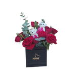 Eucalyptus - 2 un. Ursinho de pelúcia - 2 un. baby rose red - 4 un. rosas vermelhas - 7 un.