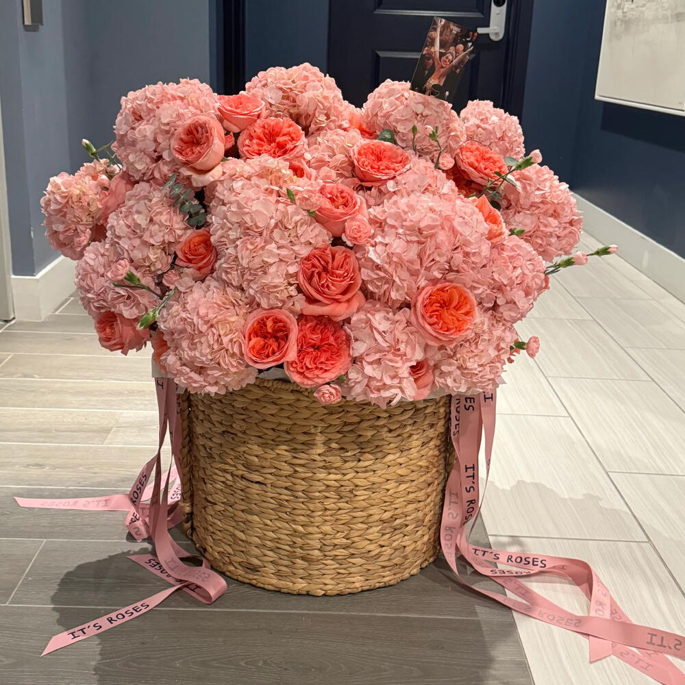 Cesta Elegante com Hortênsias Cor-de-Rosa Rosas em Estilo Peônia Encante-se com o charme deste arranjo em cesta lindamente elaborado, com hortênsias cor-de-rosa exuberantes e elegantes rosas em formato de peônia. Tons suaves e românticos e flores cheias e texturizadas unem-se para criar um design floral gracioso, perfeito para qualquer ocasião. Este arranjo é ideal para aniversários, bodas, celebrações, presentes de agradecimento ou simplesmente para alegrar o dia de alguém. Cuidadosamente montado por floristas especialistas, oferece uma aparência fresca e luxuosa que deixa uma impressão duradoura. 🚚 Detalhes da entrega: • Entrega gratuita no mesmo dia disponível • Atendemos todas as áreas de Miami a Fort Lauderdale, incluindo: Downtown Miami, Miami Beach, Coral Gables, Doral, Hialeah, Aventura, North Miami, Hollywood, Dania Beach, Pembroke Pines, e Weston ✨ Frescas, elegantes e inesquecíveis — peça hoje e receba flores deslumbrantes entregues diretamente à sua porta