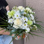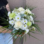 eucalipto - 1 un. crisântemo - 3 un. cravos - 10 un. folhas - 6 un.