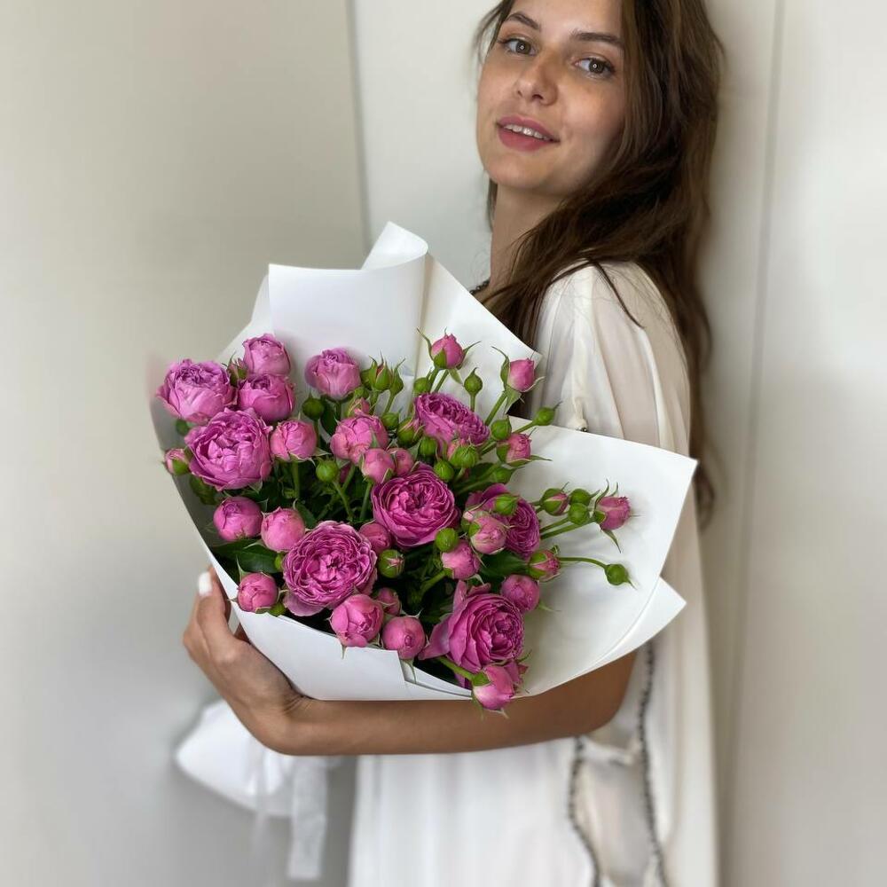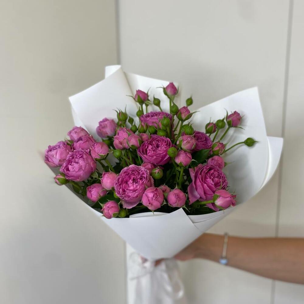 Представьте себе впечатляющий монобукет, состоящий из 7 штук роскошных кустовых роз пионовидного вида. Эти цветы известны своим богатством и изысканностью. Их лилово-розовые бутончики пленят своей чарующей красотой и исключительным ароматом. Этот букет станет изысканным признанием в чувствах, благодарностью или прекрасным подарком без повода. Обрадуйте своих близких неизменным совершенством природы.