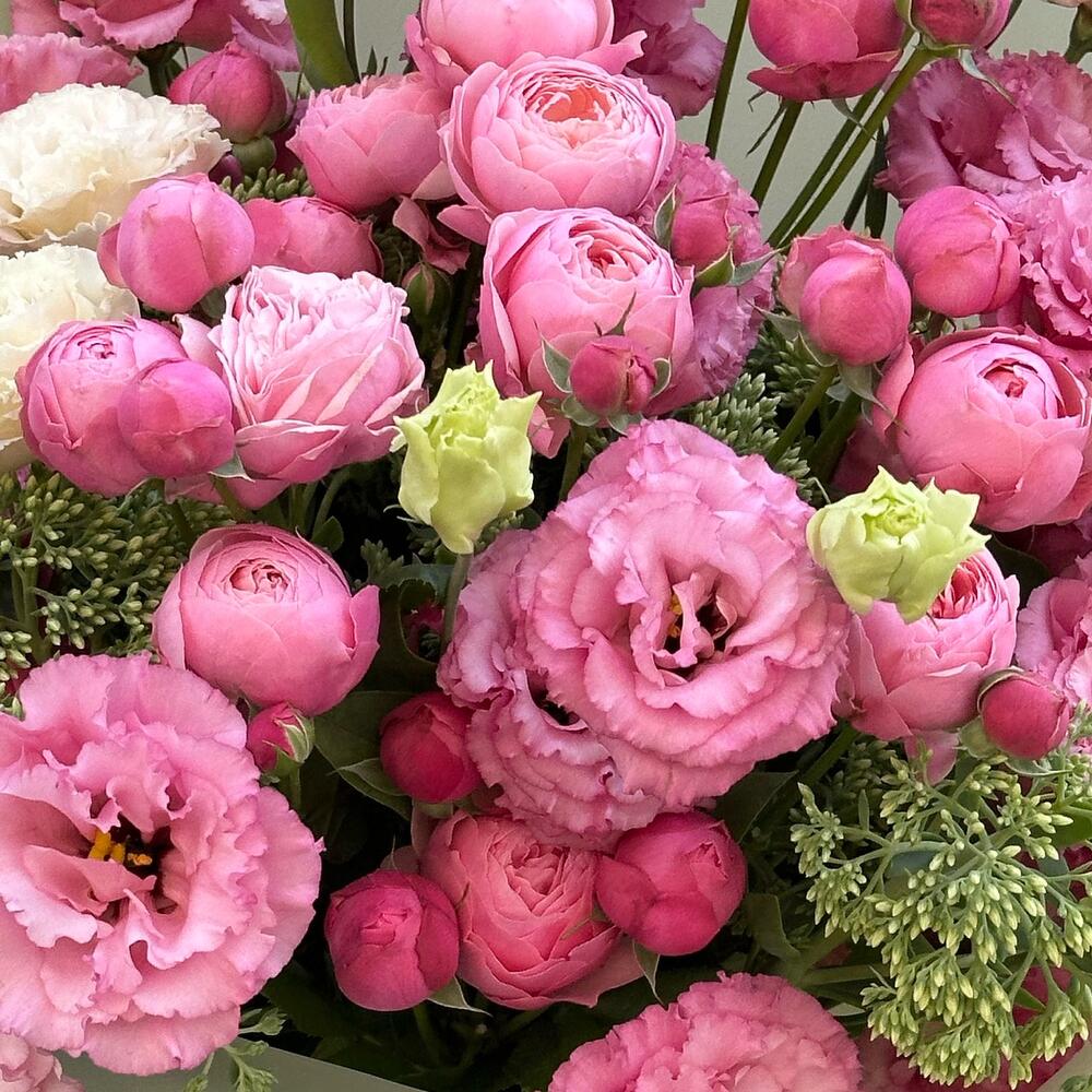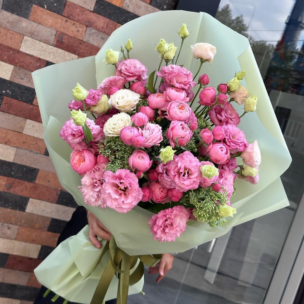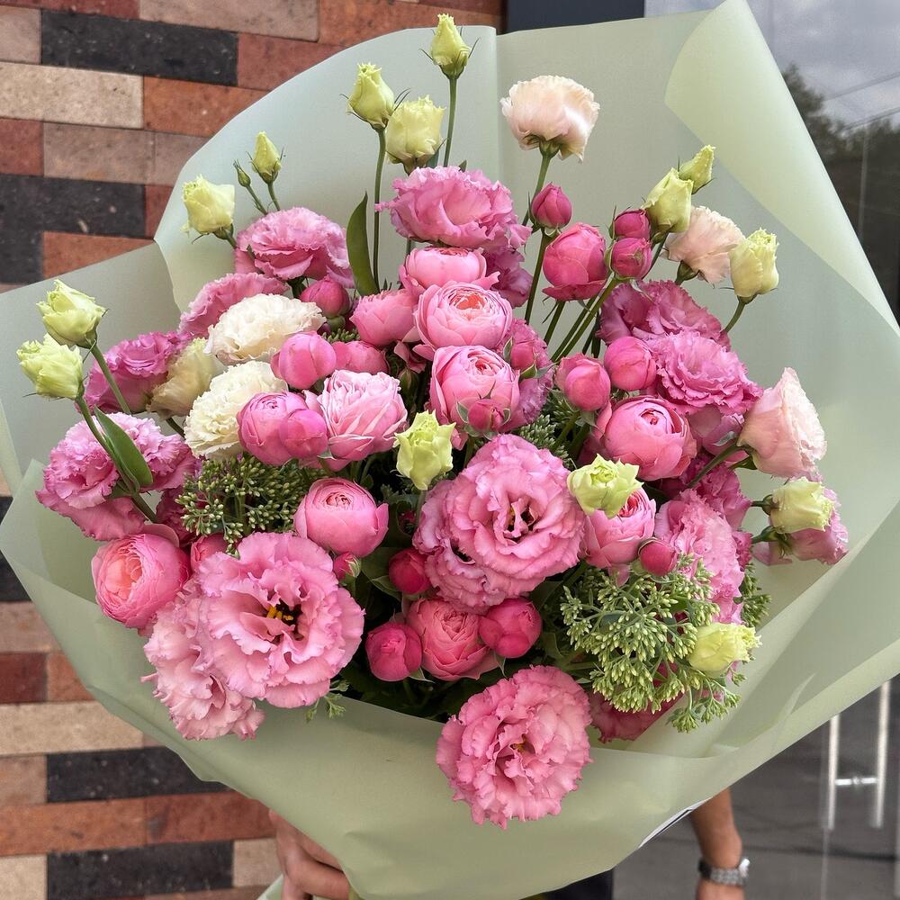 💐 Монобукет из пионовидных роз и эустомы в нежно-розовых тонах