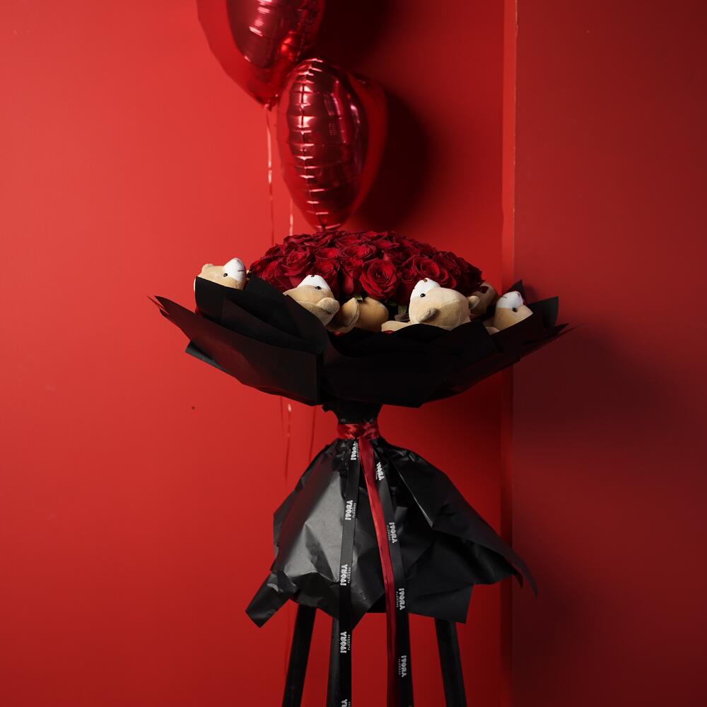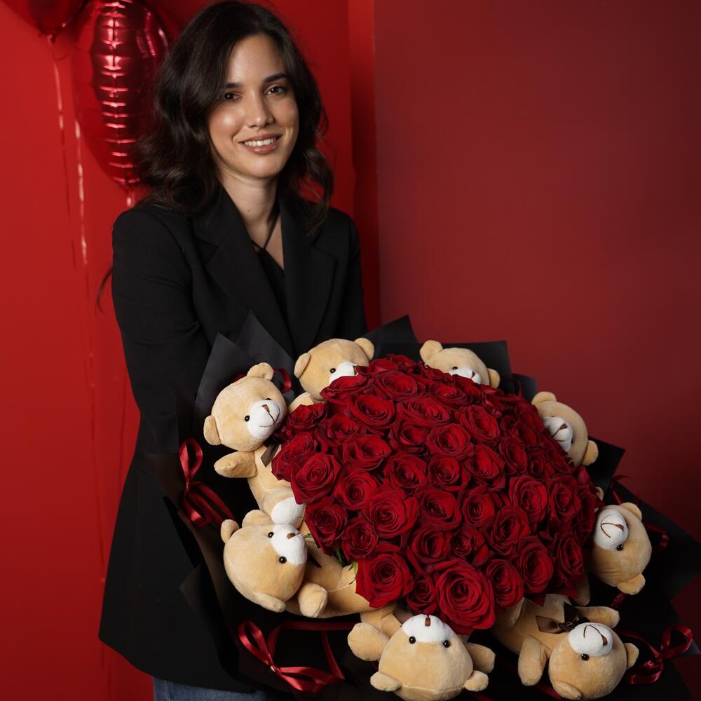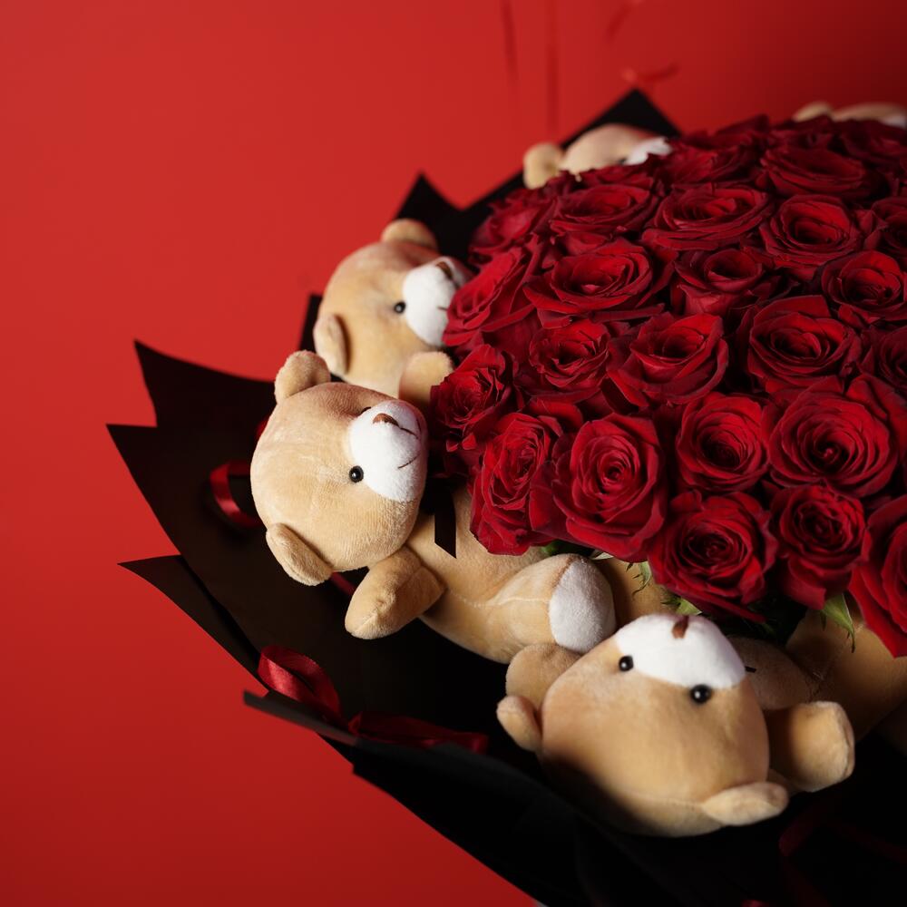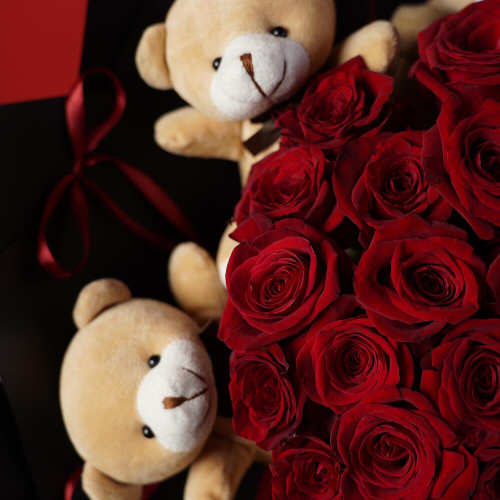Red roses with teddy