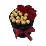Box - 1 un. Ferrero Rocher - 16 un. rosas vermelhas - 5 un.