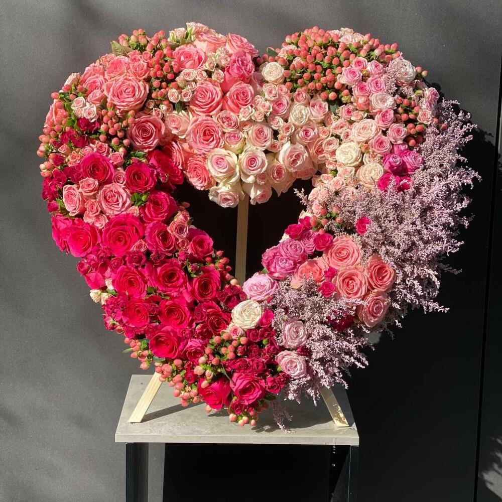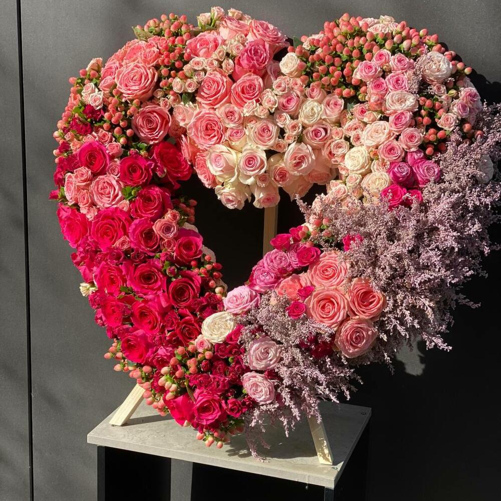 Serce z świeżych róż w delikatnych odcieniach różu — wzruszająca i elegancka kompozycja stworzona jako wyraz głębokiej miłości i jasnej pamięci. Odpowiednia na ceremonię pożegnalną, by z szacunkiem i ciepłem uczcić ukochaną osobę.Jeśli klient nie odpowiada na wiadomości lub numer telefonu nie jest polski, na godzinę przed dostawą, sklep może samodzielnie zmienić: odcień kwiatów lub skład może zostać zmieniony, ale stylistyka zostanie zachowana.