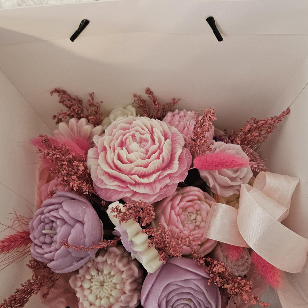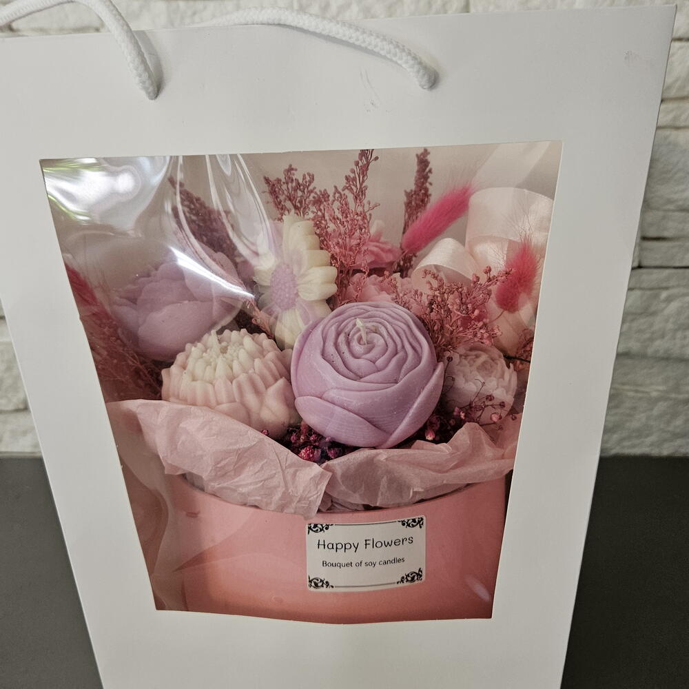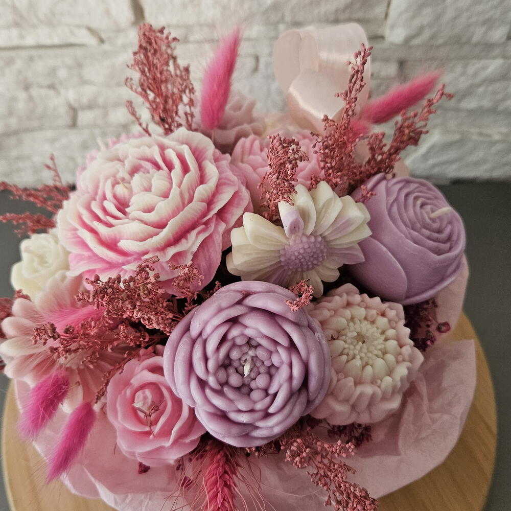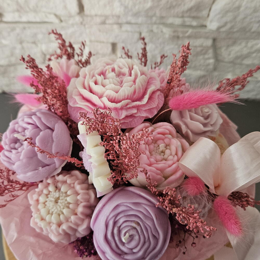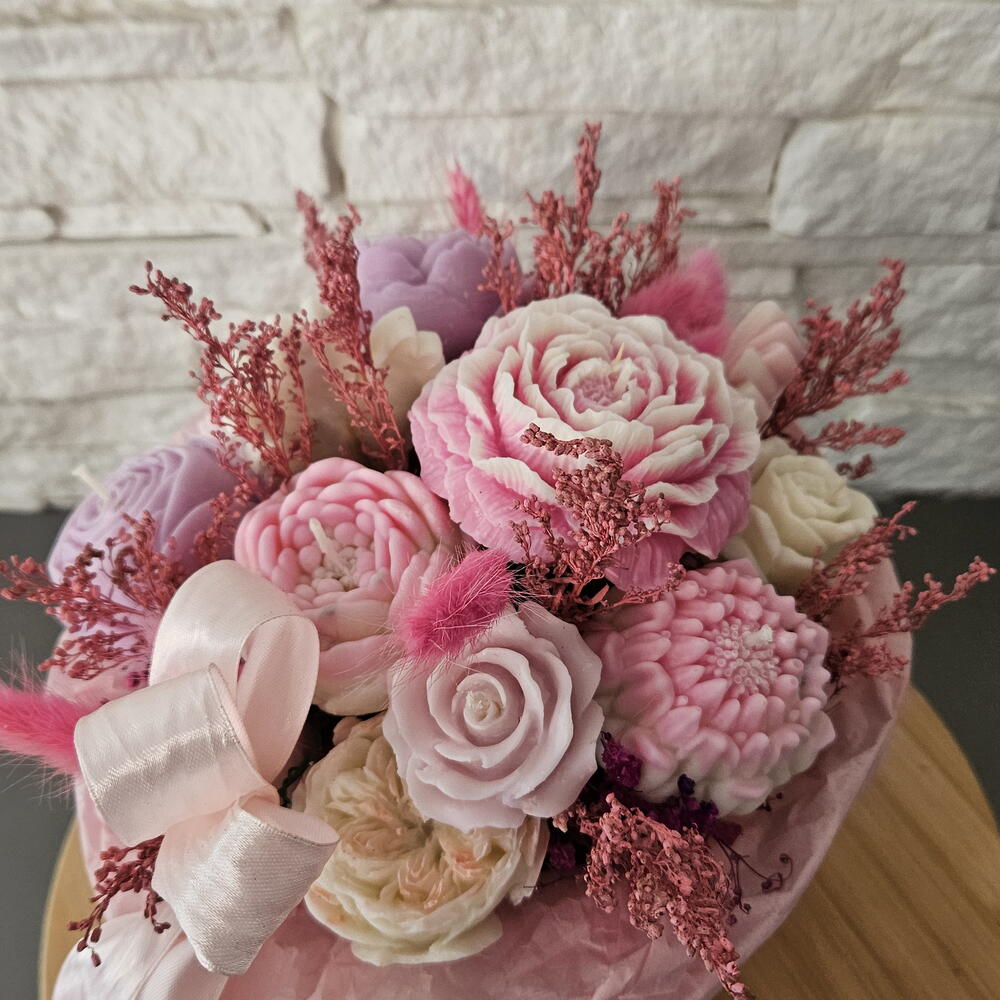 Na pierwszy rzut oka — bukiet kwiatów. W rzeczywistości — ręcznie robione świece z naturalnego wosku sojowego w kształcie piwonii, dalii i jaskrów. 🕯 Pachnące. 🌿 Ekologiczne. 🎁 Idealny prezent — gotowy do wręczenia! Zaskocz bliską osobę pięknym i nietypowym upominkiem. Nie zwiędnie, nie trzeba podlewać, a radość daje każdego dnia.