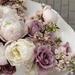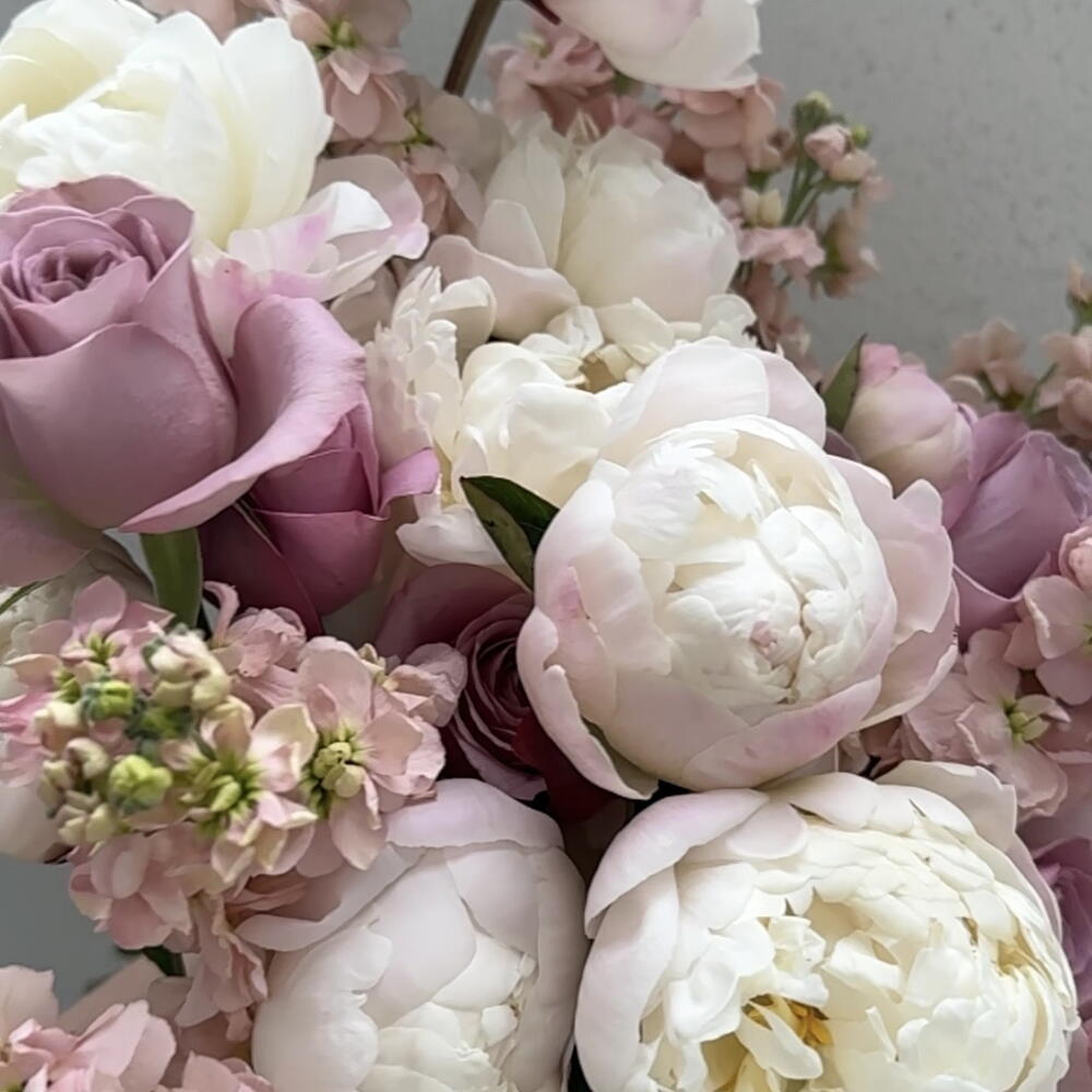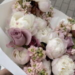 Matiola - 7 un. Peônias - 10 un. papel de embrulho - 1 un. rosas - 10 un.