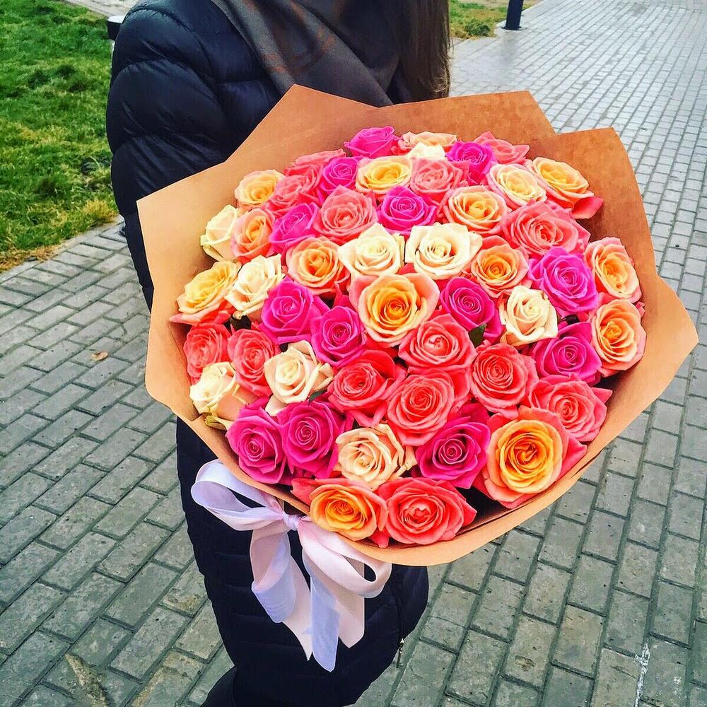 Este buquê é como uma poesia sobre o nascer do sol tecida com rosas – as sutis transições de cores do rosa pastel ao fúcsia profundo e ao laranja quente lembram os primeiros raios da manhã. Rosas recém-cortadas, cheias de vida, são uma promessa de durabilidade e experiências inesquecíveis. Cada botão é uma expressão de alegria e gratidão, ideal para transmitir os sentimentos mais calorosos.