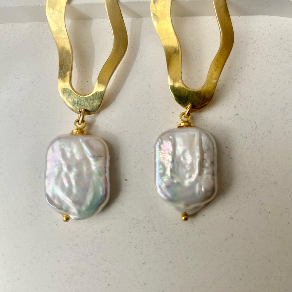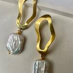 Серебряные серьги ручной работы с натуральным барочным жемчугом. Покрыты золотом 999пробы.Вес изделия 11.7гр.