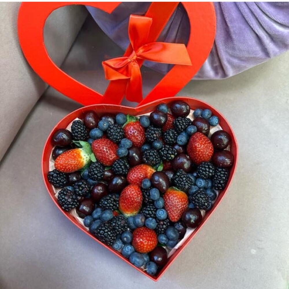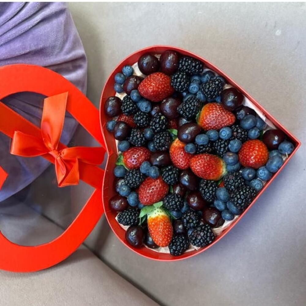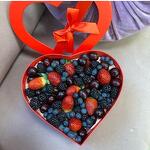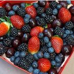 Клубника 250 гр. Лента атласная 1 Шт. Ежевика 150 гр. Наполнитель 1 шт. Голубика 150 гр. Черешня 200 гр. Коробка шляпная сердце 1 шт. Размер: Ширина 13 см Высота 6 Набор сочных, свежих ягод для подарка! Идеальное дополнение к любому подарку и на любой повод!
