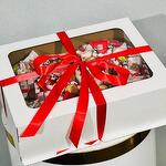 Raffaello - 12 un. Caixa - 1 un. Fita de cetim - 1 un. Kinder Surpresa - 3 un. Kinder Chocolate - 90 un. fererero Roche - 12 un. Kinder country - 1 un. doces Panda drageia - 100 gr.