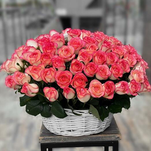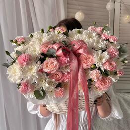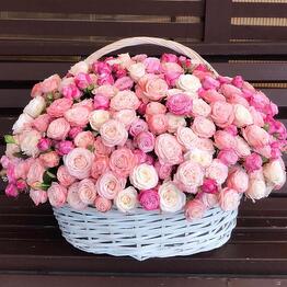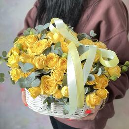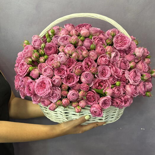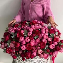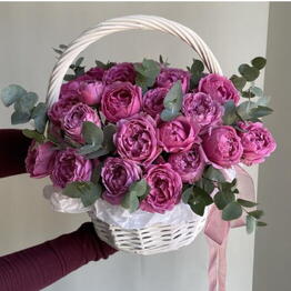 Шикарная корзина с кустовыми пионовидными розами Бомбастик и ароматным эвкалиптом 5.0027 Buy 67 500 ֏ 90 000