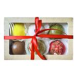 Gift Mochi set of 6 pieces consists of: - MOCHI CHOCOLATE STRAWBERRY - 1 PC - MOCHI PISTACHIO - 1 PC - MOCHI SNICKERS - 1 PC - MOCHI GREEN MATCHA - 1 PC - MOCHI WILD CURRANT - 1 PC - MOCHI MANGO - 1 PC - GIFT BOX AND DECORATIONS * In this set, mochi can be substituted if one of the flavors is missing. Rice flour, 90% Belgian chocolate, fresh strawberries, dried strawberries, boiled strawberries, pistachios, cream cheese, mascarpone, pistachio paste, peanuts, caramel, cocoa, matcha, fresh currants, fresh mango, mango puree All mochi are gluten, egg and gelatin free.