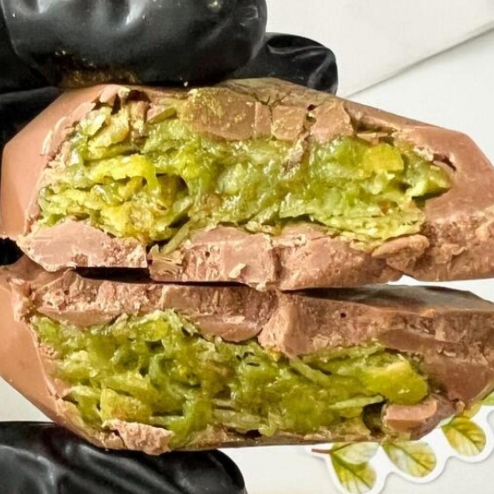 Молочный шоколад: какао масло, какао порошок, сахар, сухое молоко, соевый лецитин. Начинка: тесто катаифи, сливочное масло, фисташковая паста, кунжутная паста