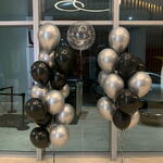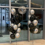 2 sets: 15 chrome silver 15 latex black + 1 babble balloon with print and confetti