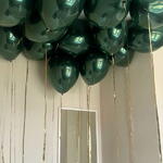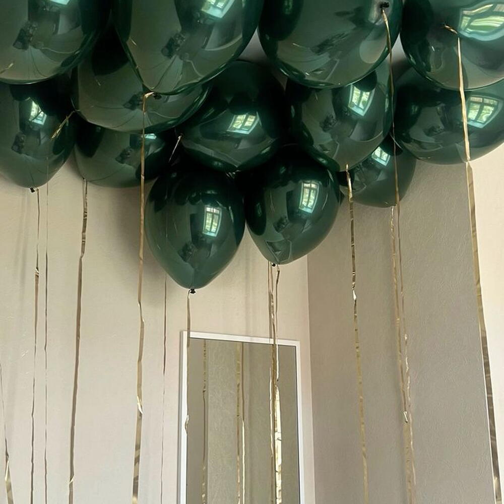 Роскошные шары под потолок для мужчины. Отлично подойдет на день рождения, юбилей, день отца или 23 февраля. Шары исполнены в технике дабл стафф (двойной шар), что обеспечивает глубокий темно-зеленый оттенок. Гелиевые шарики завязаны золотой лентой премиум-качества. Все шары мы обрабатываем специальной жидкостью для увеличения полета от 3-х дней и более.
