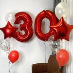 Композиция из шариков с цифрами 10шт — это прекрасный вариант фотозоны на день рождения, как отдельный элемент декора, так и в сочетании с другими композициями из шаров. Ее можно подобрать именно по характеру или увлечениям именинника. Данная композиция для девушки на тридцатилетний юбилей. Цена указана за две красные фольгированные цифры 90 см и два одинаковых фонтана в состав каждого входит: красная фольгированная звезда 45 см, один шар с конфетти 30 см и два латексных шара белого и красного цветов 30 см. Воздушные шары — отличный способ сделать праздник ещё ярче, украсить интерьер и подарить близким положительные эмоции. Фантазируйте, и помещение наполнится неповторимыми красками!
