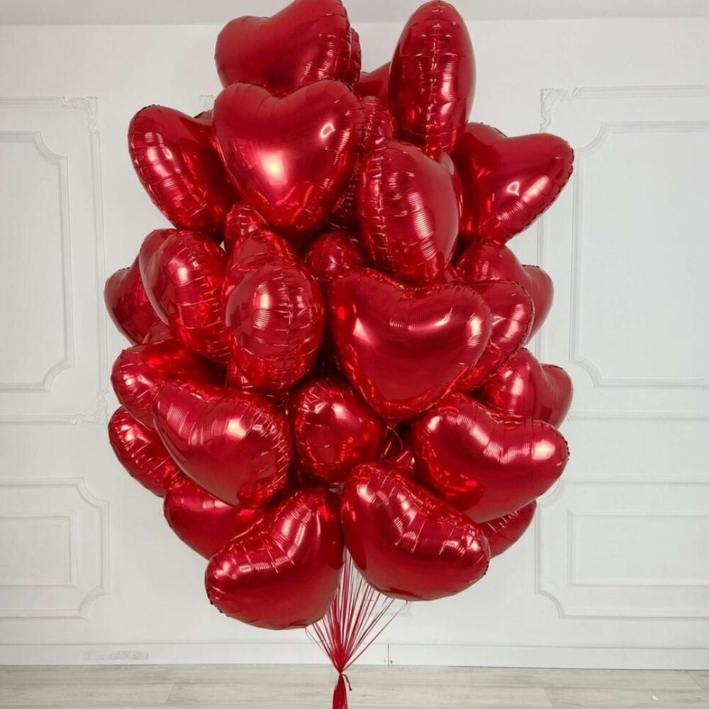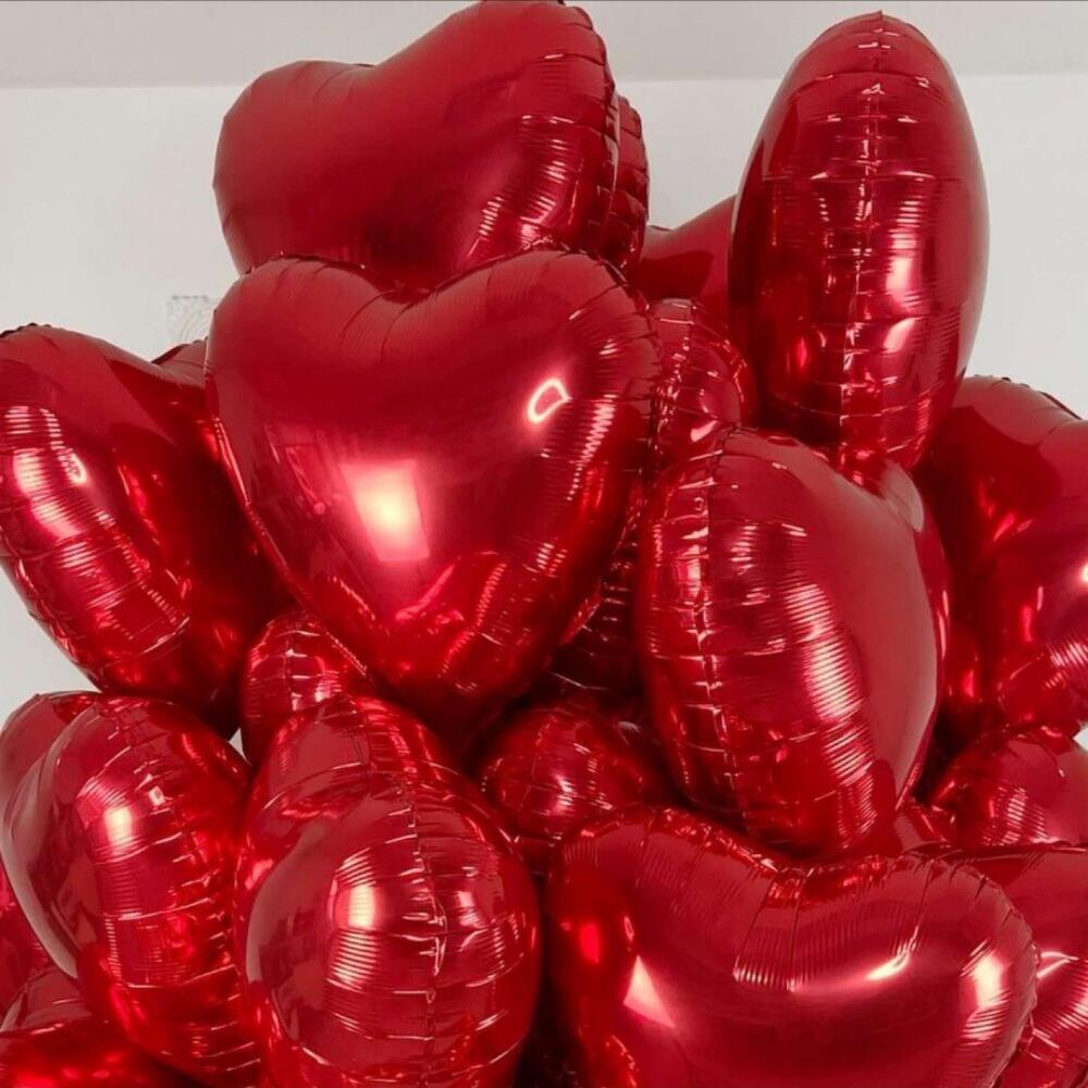Огромная охапка фольгированных красных Шариков в форме сердечек покорит сердце любой девушки и станет одним из самых желанных подарков на День Святого Валентина В данный сет входит 35 фольгированных Шариков сердечек 46CM.