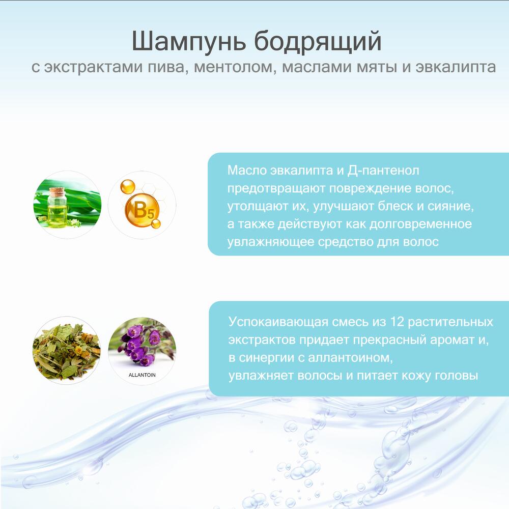 Energizing Shampoo with Beer Extracts, Mint & Eucalyptus Oil Jazz up your hair The powerful, but gentle formula of Mr. Beerskin Energizing Shampoo with excellent foaming power and good detergency gently cleanses hair and scalp. It softens and moisturizes hair and leaves it lavish and glossy. It contains 4 main Beer Extracts (hydrolyzed yeast extract, barley seed extract, hop extract and oat extract) with a high proportion of biologically relevant proteins, vitamins and minerals. Natural Melissa and Peppermint Extracts refresh and leave a minty scent, while Menthol gives a crispy fresh feel. Eucalyptus Oil and D-Panthenol prevent hair damage, thicken hair, improve luster and sheen, and act as a long-lasting hair moisturizer. A calming mix of 12 Herbal Extracts gives a wonderful aromatic scent and works in synergy with Allantoin, which repairs, relieves dryness, and soothes. The formula is free of sulfates, parabens, and silicones.