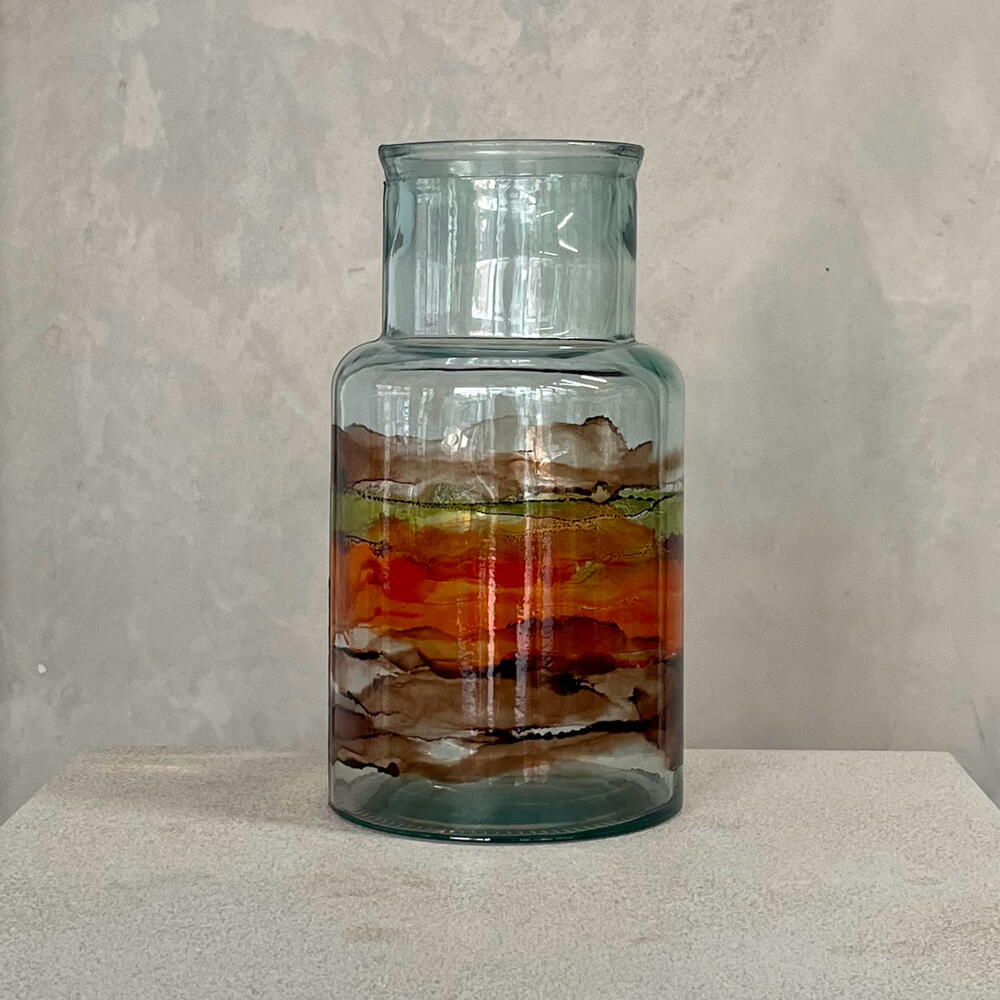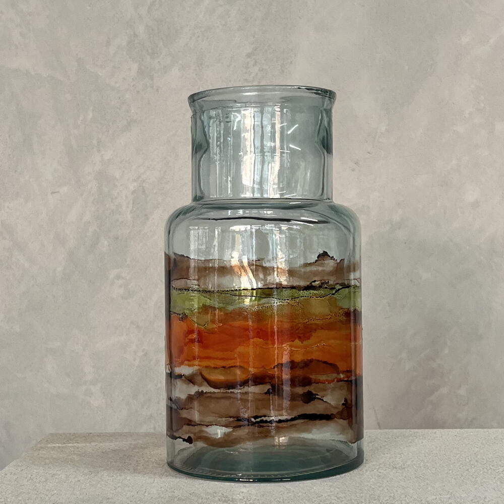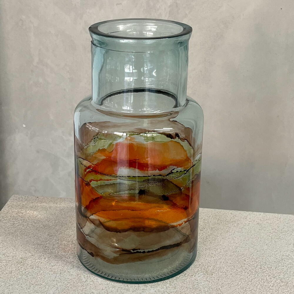 Glass vase with autumn watercolour design. A universal vase for any interior.