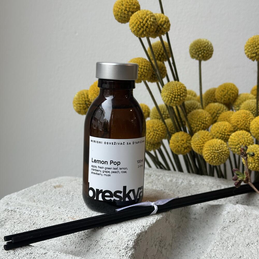 Scented diffuser from the brand Breskva, 100ml The room will immediately feel cozier and more atmospheric as soon as the Breskva scent fills the space. We can help you choose a fragrance, whether you prefer something softer or more intense. Share your preferences with us, and well assist you in selecting: Lemon Pop Silky Peach Velvet Woods Dark Rose Spice Citrus Tobacco Minty Oasis Gin Tonic Rhubarb Whisper Obsidian Orchid Just Probed Lavender Zen Blossom Air Citrus Basil