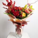 The vase matches all bouquets from our store. Made from thick glass, so it's durable. Will be a great addition to a gift.