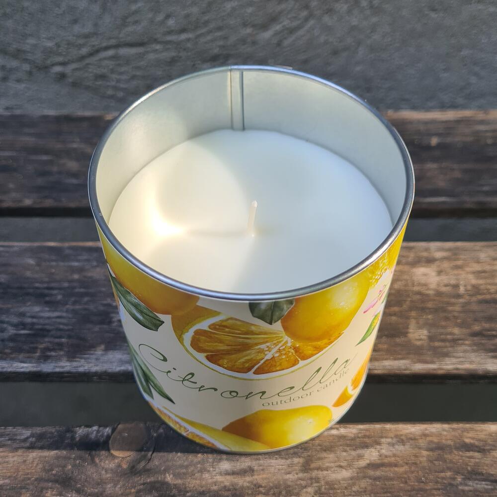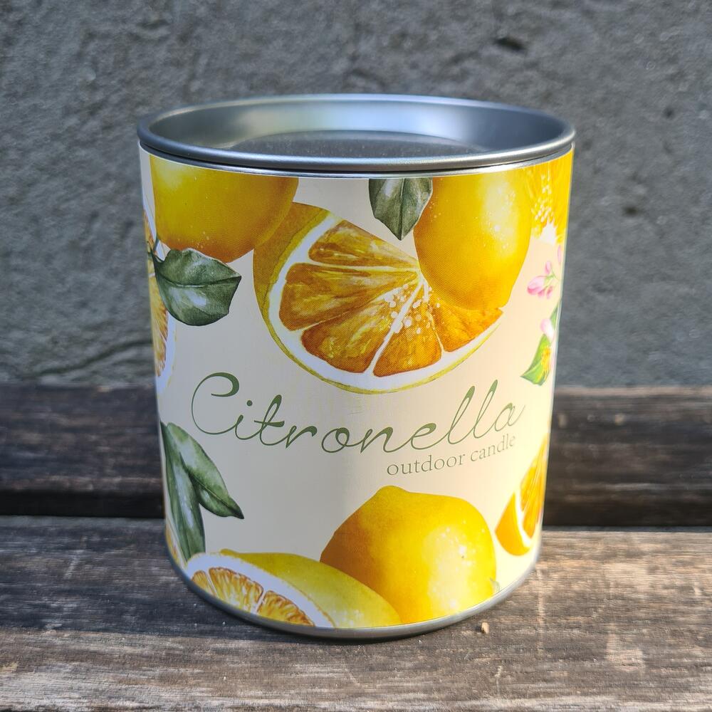 Citronella - lemon soya candle in an aluminum jar.