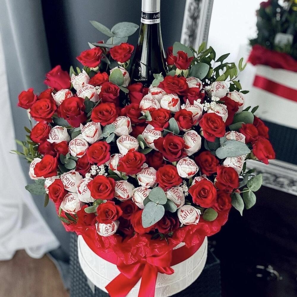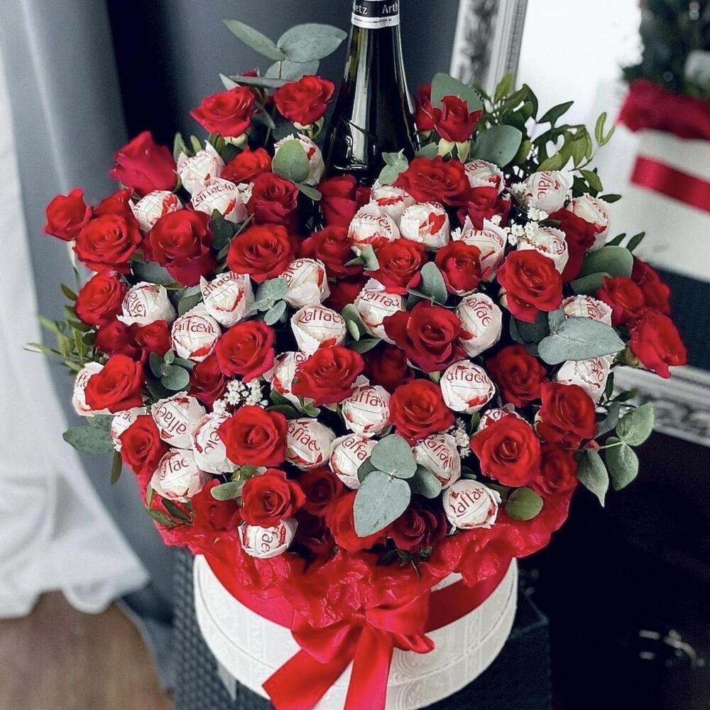 Raffaello - 35 pcs leaves pistachios - 7 pcs roses - 39 pcs