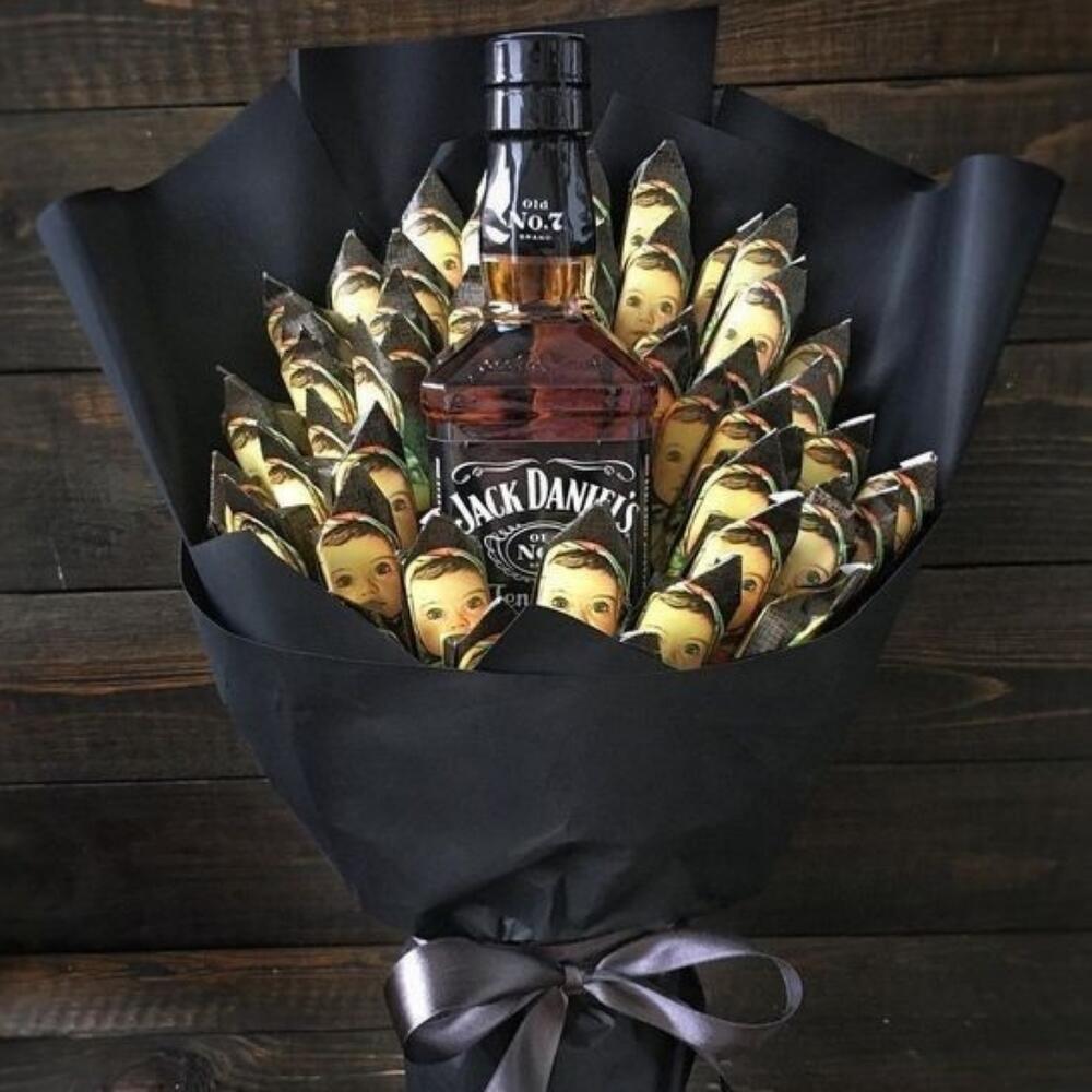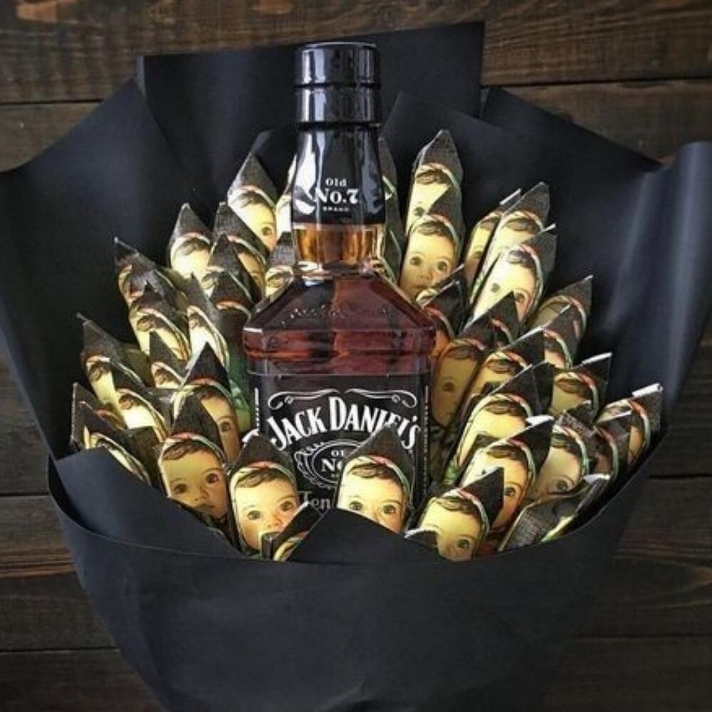 🥃 Букет «Мужской Идеал» 🖤 Стильный, брутальный, эффектный! Бутылка виски (350 мл) в окружении 50 конфет «Аленка» в элегантной чёрной упаковке — безупречный подарок для мужчины, который знает толк в удовольствиях. 🎯 Идеален для дня рождения, юбилея или просто как знак уважения. 📍 Доступен в Blooming Elegance с доставкой по городу. 🍫 Подарите впечатления, которые запомнятся!