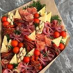 cheese - 200 g pistachio spike - 3 pcs cherry on the branch - 150 g sliced beef packing - 1 pcs raw smoked pork slices packaging - 1 pcs spicy sausages packade - 1 pcs