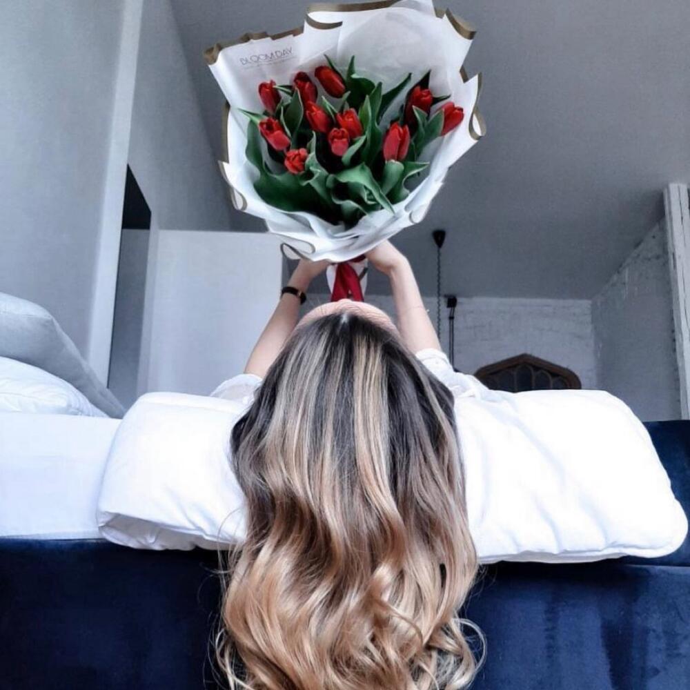 Bouquet of 25 tulips in a beautiful packaging