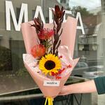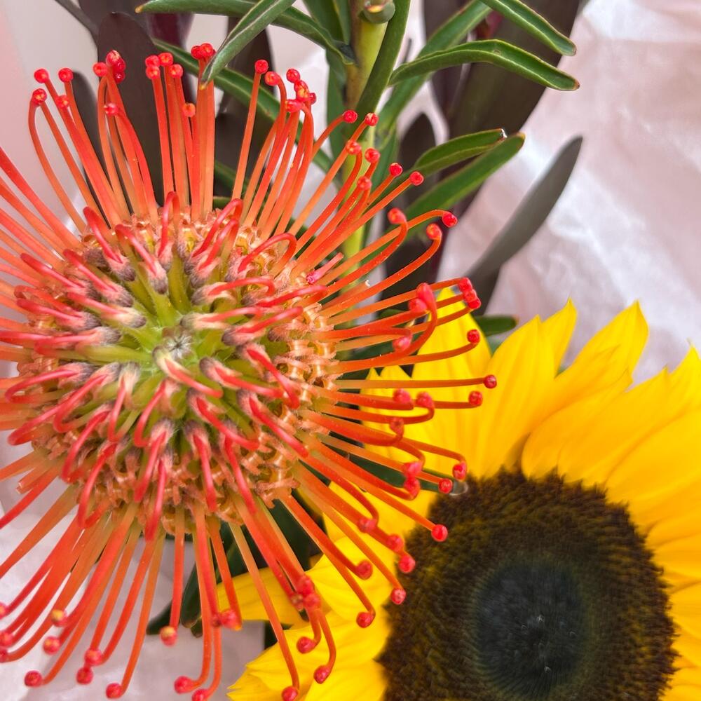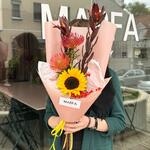 Leucadendron - 2 pcs Sunflower - 1 pcs ilex - 1 pcs leucospermum - 2 pcs