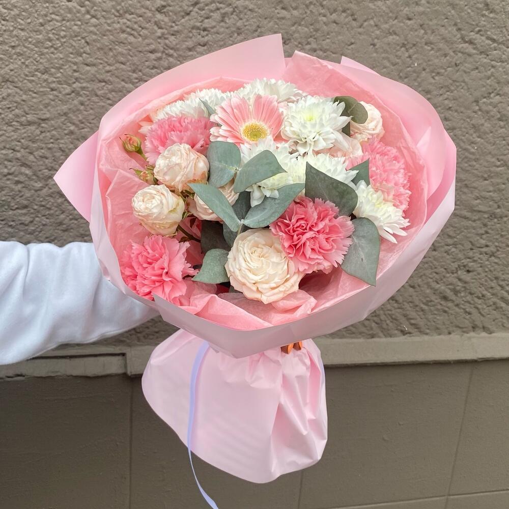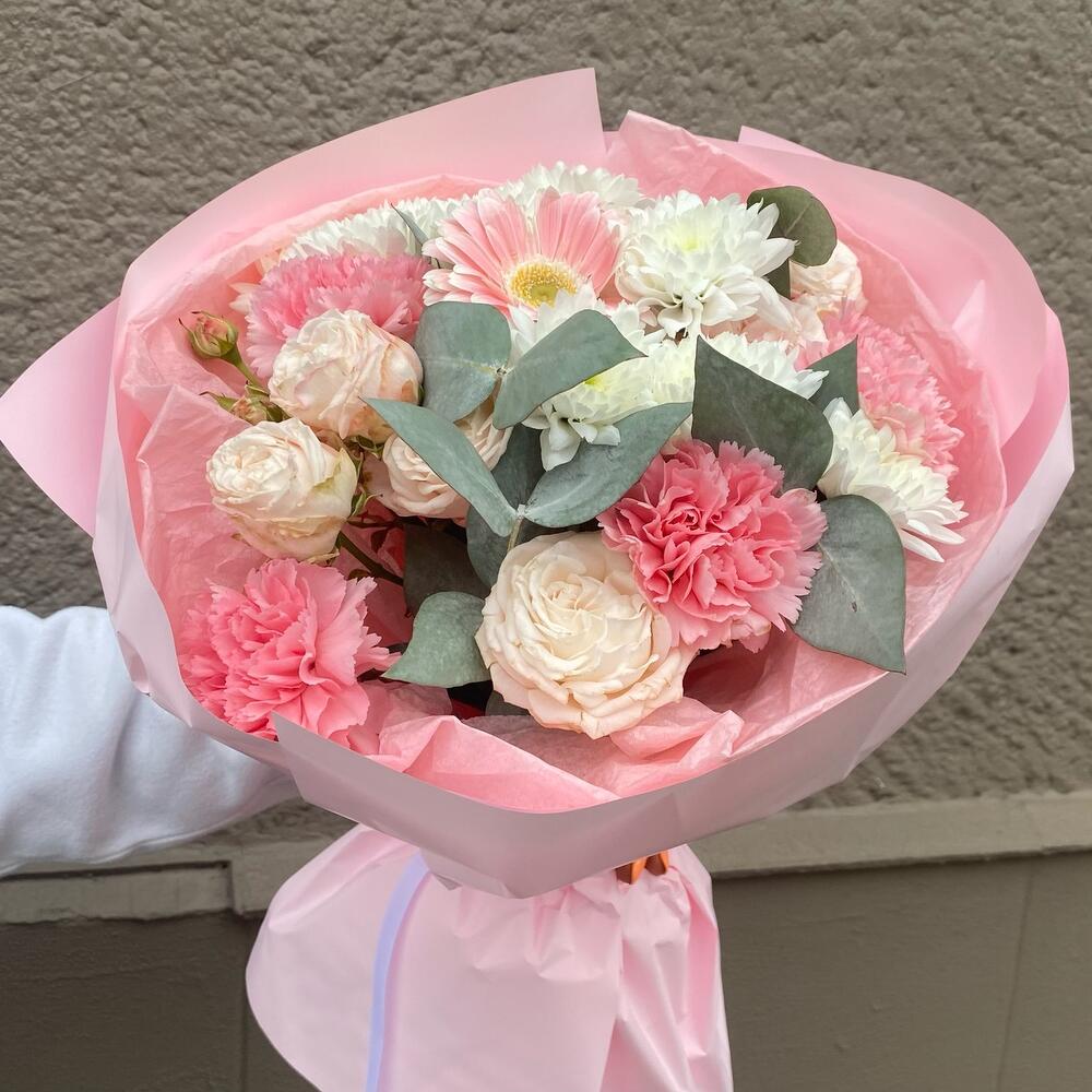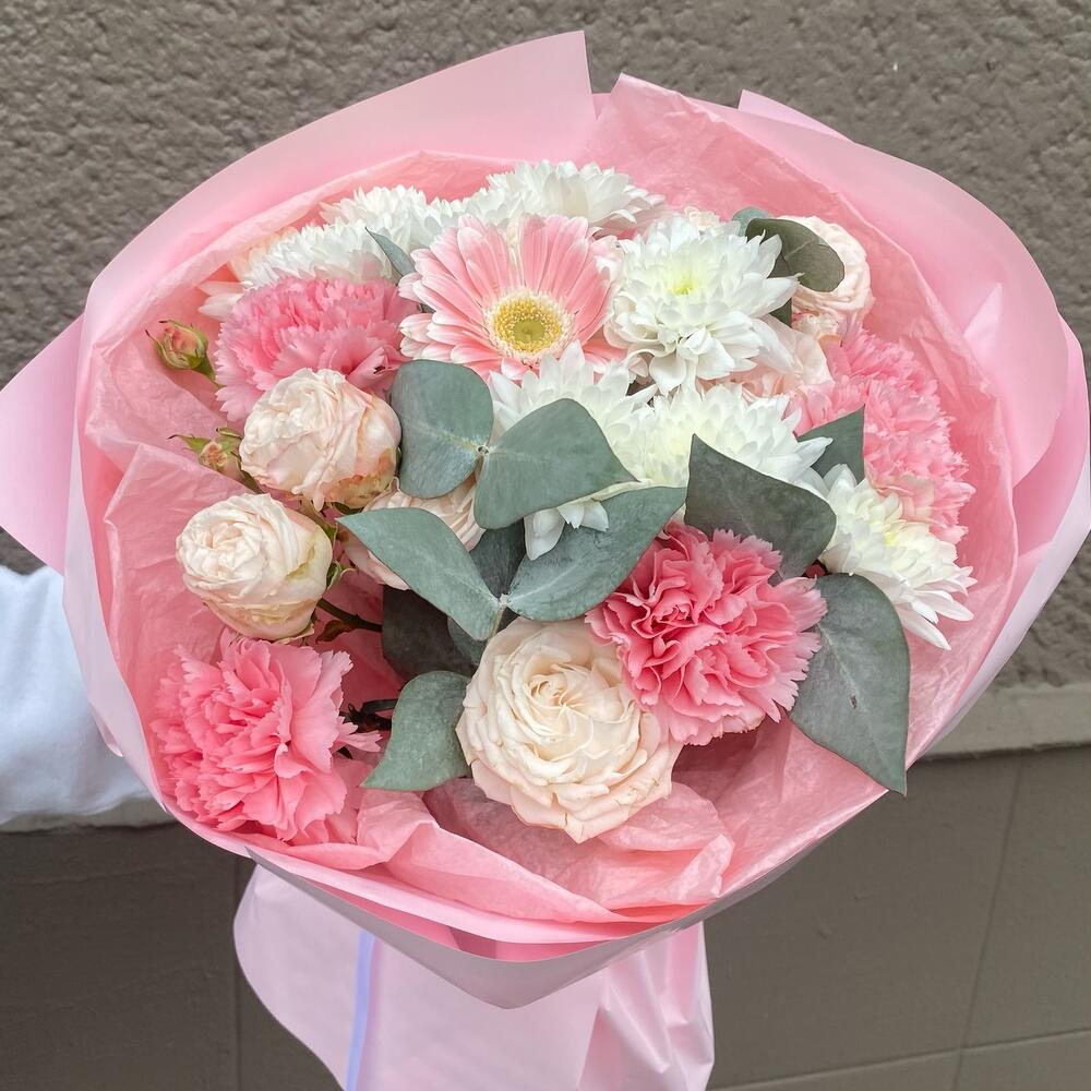 Gerbera - 1 pcs eucalyptus - 1 pcs spray rose - 1 pcs carnation - 5 pcs chrysanthemum - 2 pcs
