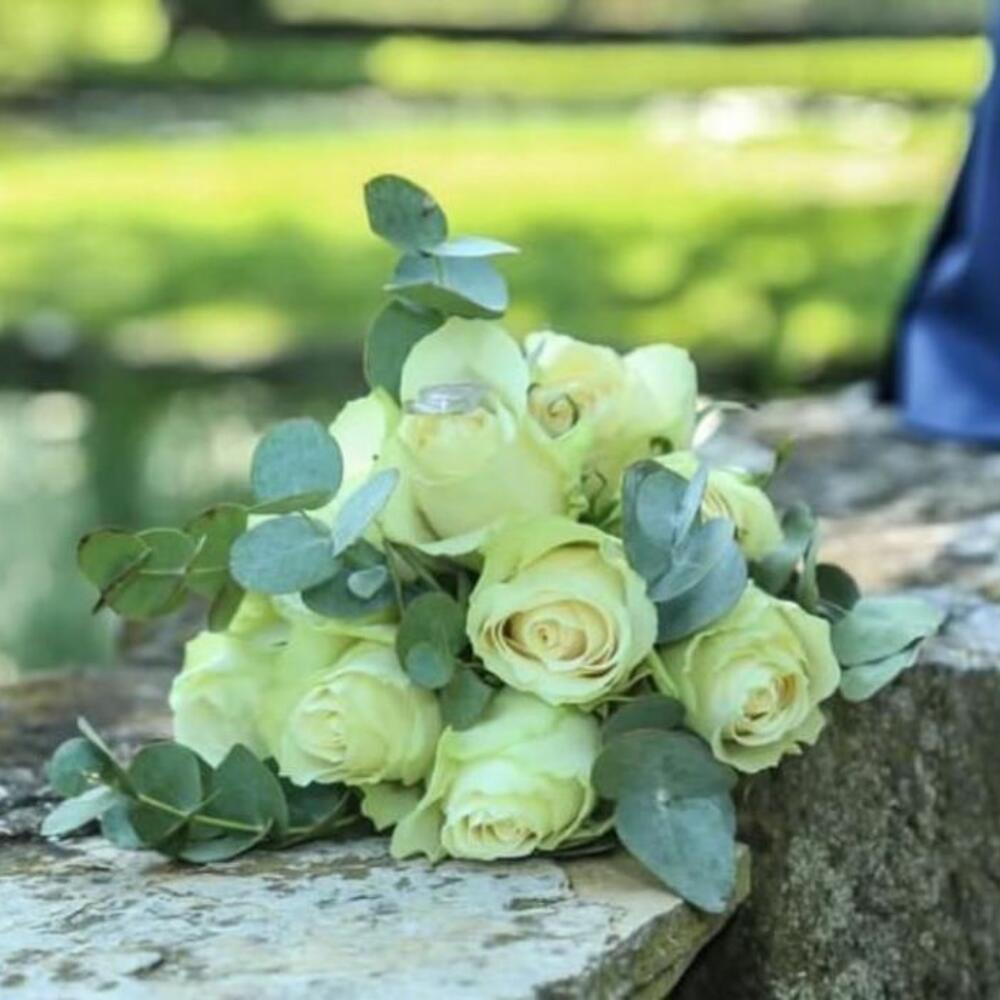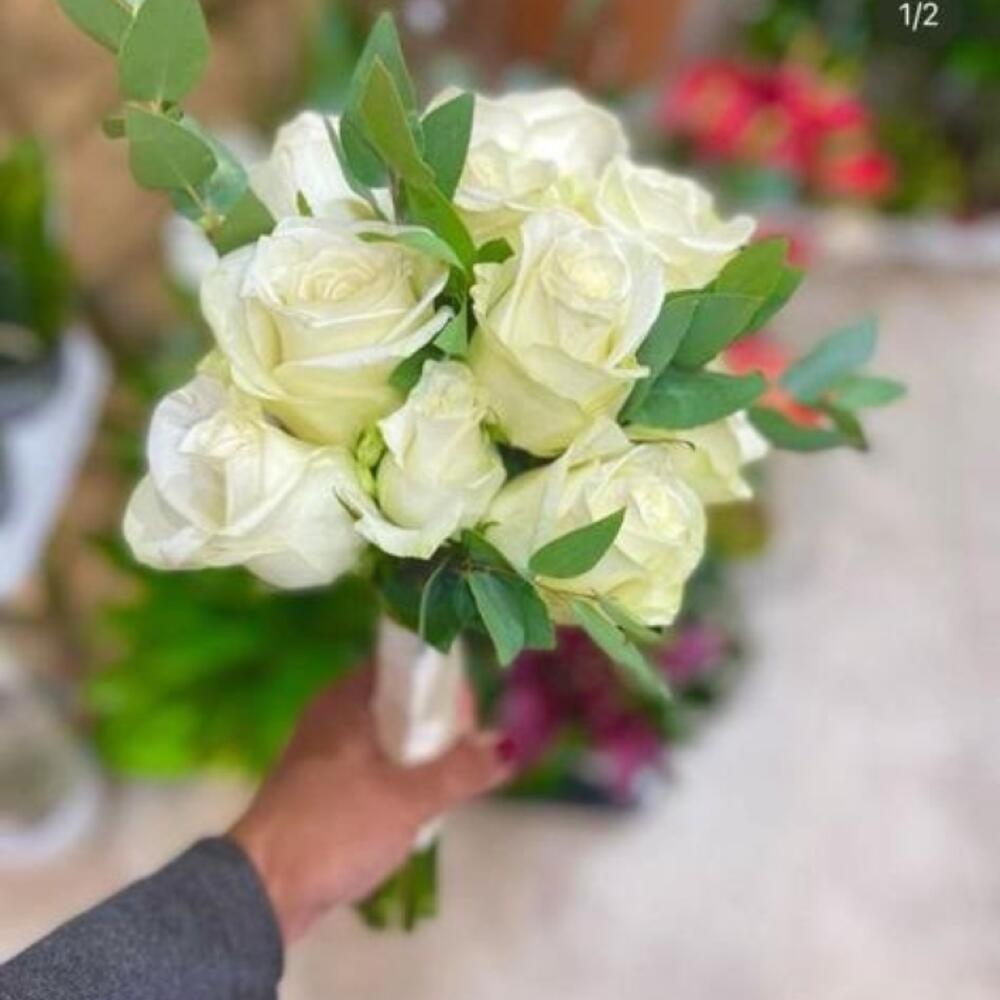 Eucalyptus - 7 pcs rose - 9 pcs satin ribborn - 1 pcs