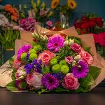 Limonium - 3 pcs Gerbera - 5 pcs Green santini - 3 pcs Lisianthus - 5 pcs roses - 5 pcs