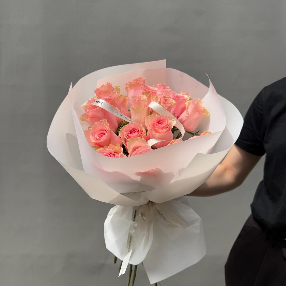 Vibrant bouquet of pink roses. Perfect for any occasion. The shade of the roses may vary due to seasonal availability. Bouquet sizes are approximate. What you get: • A detailed care guide to help your flowers last longer • Flower food to preserve freshness up to 5-7 days • A gift bag for safe delivery