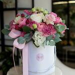 Eustoma - 3 pcs rose white - 3 pcs eucalyptus - 2 pcs rose silva pink - 2 pcs