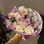 Gerbera - 2 pcs rose - 5 pcs chamomile - 1 pcs eucalyptus - 2 pcs carnation - 8 pcs daisy - 1 pcs gypsophila - 1 pcs magnolia leaves - 2 pcs