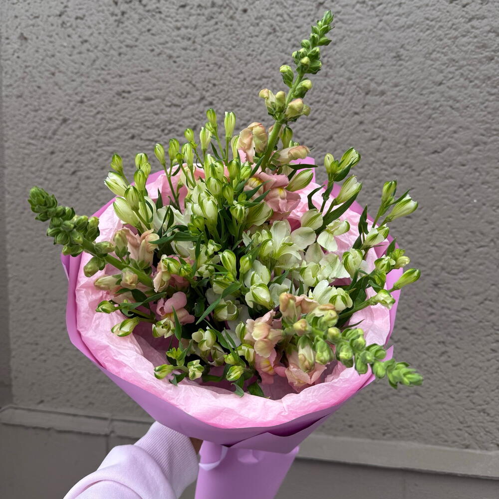 astromeria - 4 pcs snapdragon - 3 pcs decorative paper - 1 pcs