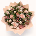 Alstroemeria - 3 pcs rose - 5 pcs spray rose - 5 pcs carnation - 5 pcs hypericum - 5 pcs