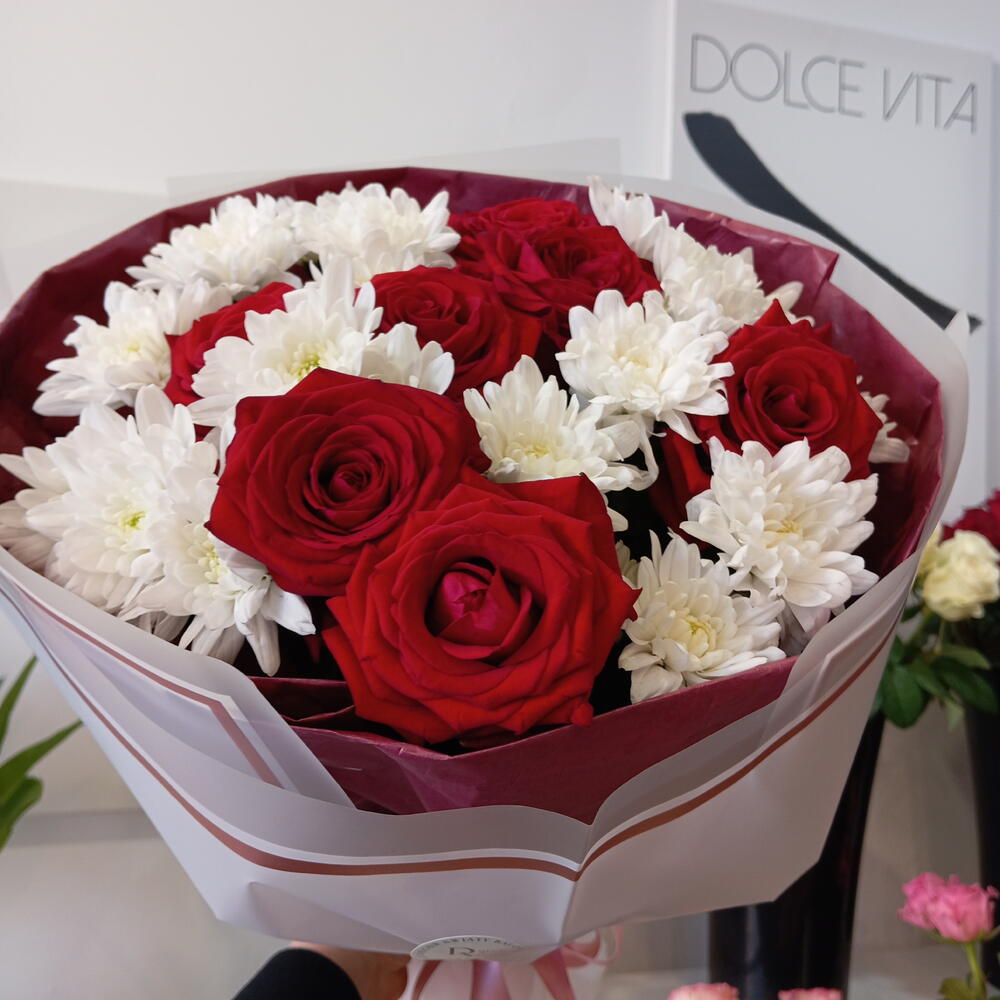 red rose - 7 pcs chrysanthemum white - 3 pcs
