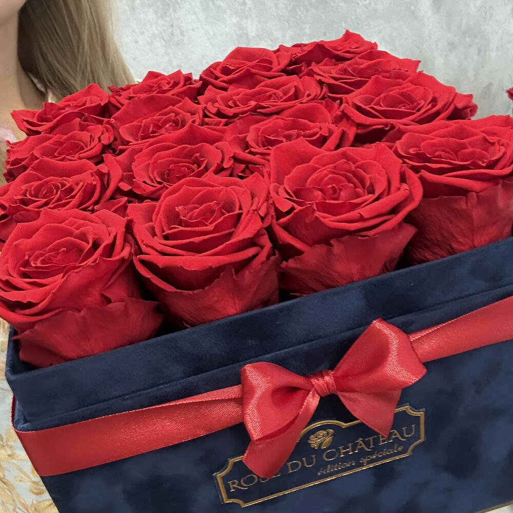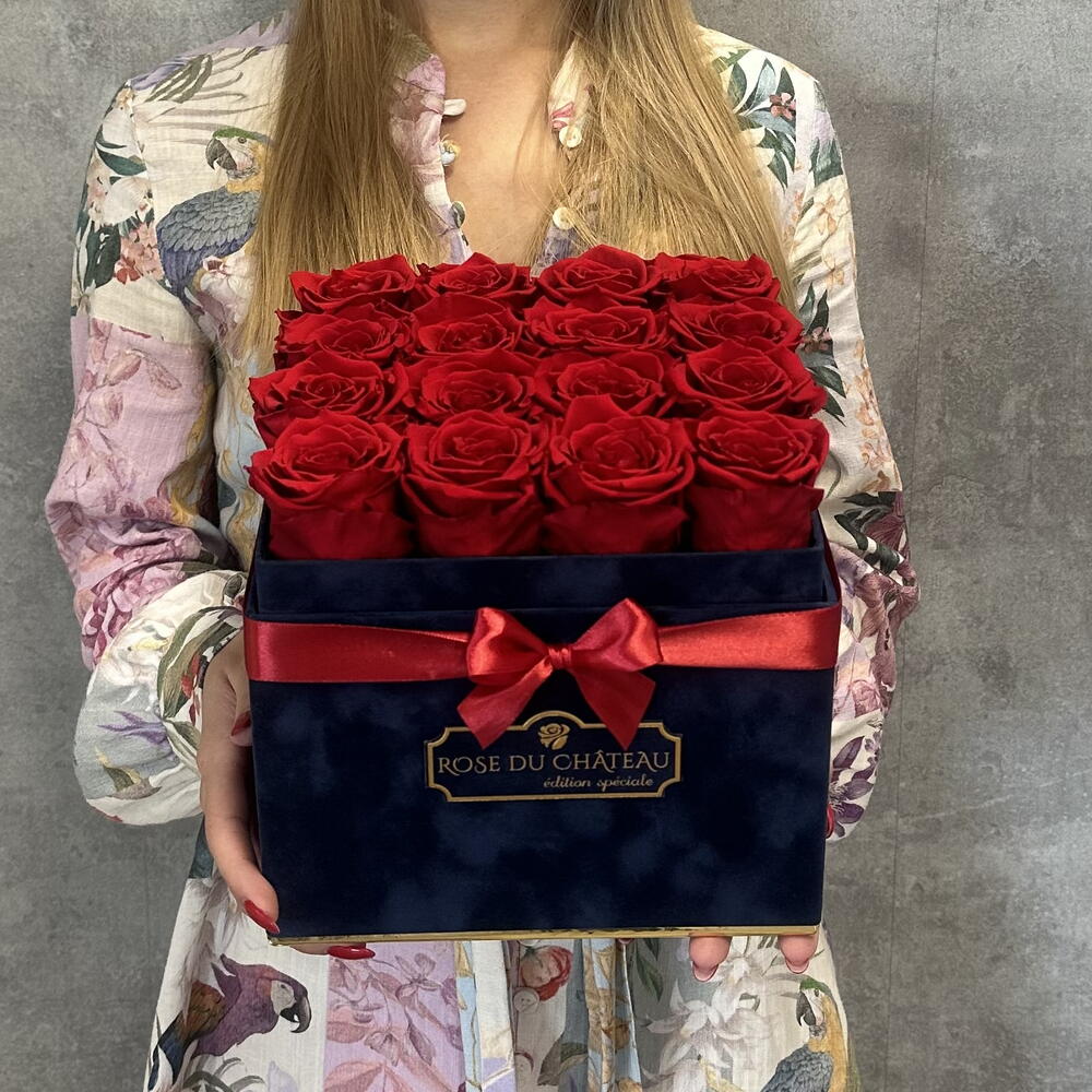 eternal red rose - 16 pcs square flower box - 1 pcs