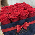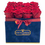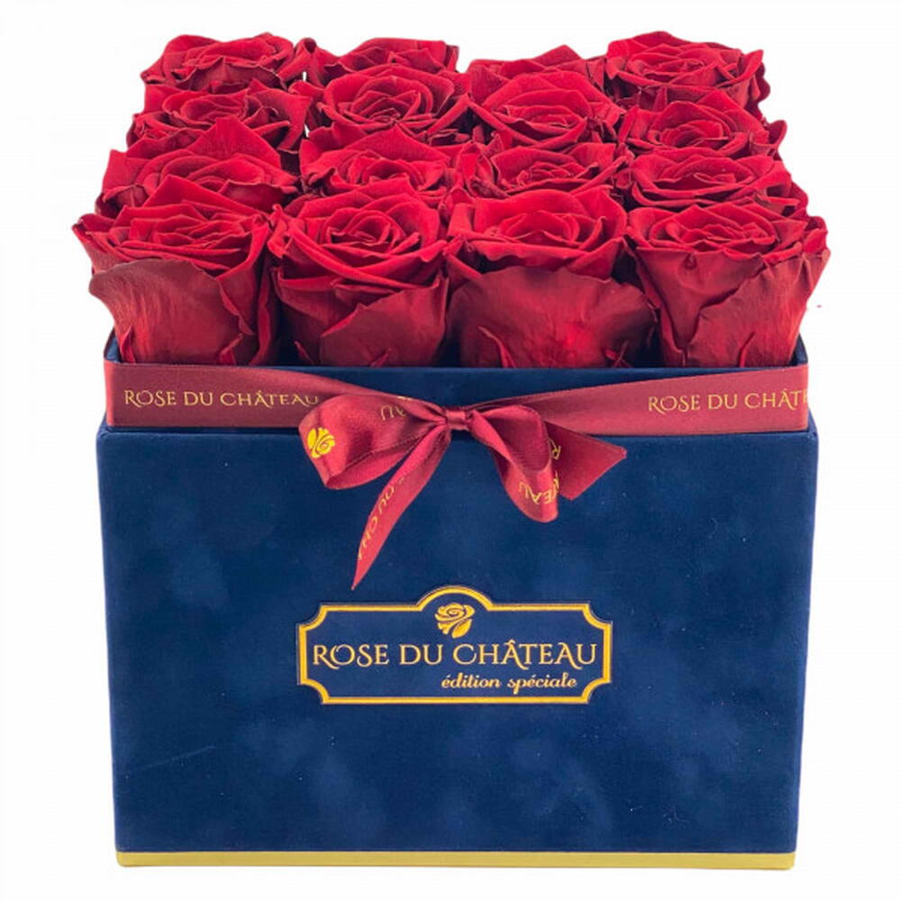 The navy flocked flowerbox with a gold band perfectly complements the red of the roses, creating an elegant and refined gift. Very pleasant, long-lasting fragrance. Wonderful for a romantic surprise, and also a fantastic decoration for many interiors. It is one of the most popular sets to express your feelings to a loved one. Eternal roses are living flowers that retain their color and shape for a minimum of 2 years. You can be sure that this stylish set will dazzle for significantly longer than a traditional bouquet. The red color of the flower symbolizes love, trust, beauty, and courage. Number of roses: The box contains 16 roses Box side length: 20 cm About the Rose du Château brand Rose du Château is one of the first European brands of flowerboxes and eternal roses. We are a manufactory dedicated to creating floral bouquets of the highest quality. Our products are specially selected, our boxes are handcrafted in Poland, and we cooperate with the best florists. When you purchase our products, you can be confident that they are a premium product.