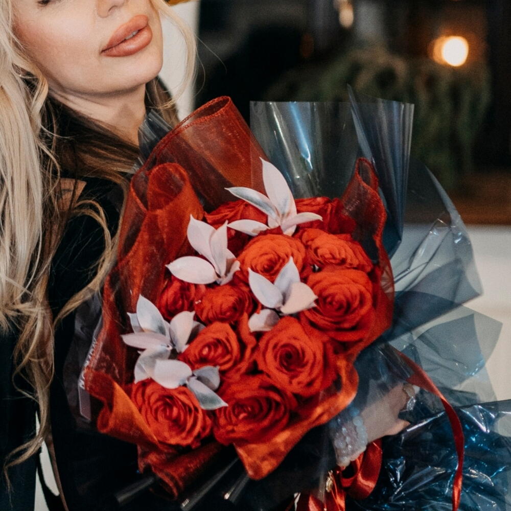 Ruscus - 5 pcs rose explorer - 11 pcs designer wrapping - 1 pcs