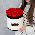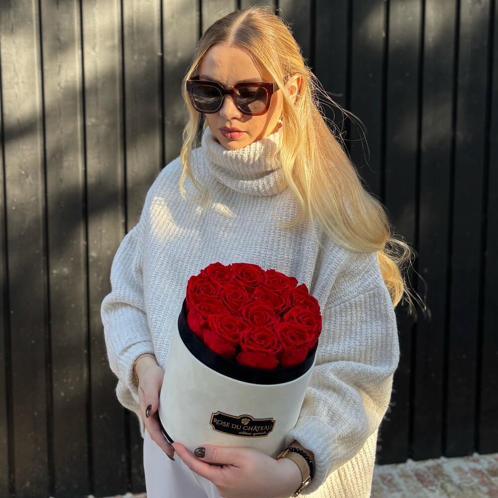 Are you a fan of elegant gifts, and ordinary flowers are not sophisticated enough? We recommend eternal roses, which are living flowers that retain their color and shape for at least 2 years. You can be sure that this stylish set will dazzle much longer than a traditional bouquet. Coco Édition Spéciale is an uncommon beige-black flock, gold embossing, three-dimensional logo. The whole creates a recipe for a unique and luxurious flowerbox. The red color of the flower signifies love, trust, beauty, courage. Number of roses: 13 Box diameter: Ø 20 cm We use one of the best varieties of eternal roses available in the world. PACKAGING METHOD OF THE FLOWERBOX Unique packaging is a feature that distinguishes us. Each flowerbox consists of a box with a lid. Additionally, for delivery, it is secured with white foam to prevent the box from being crushed during transport.