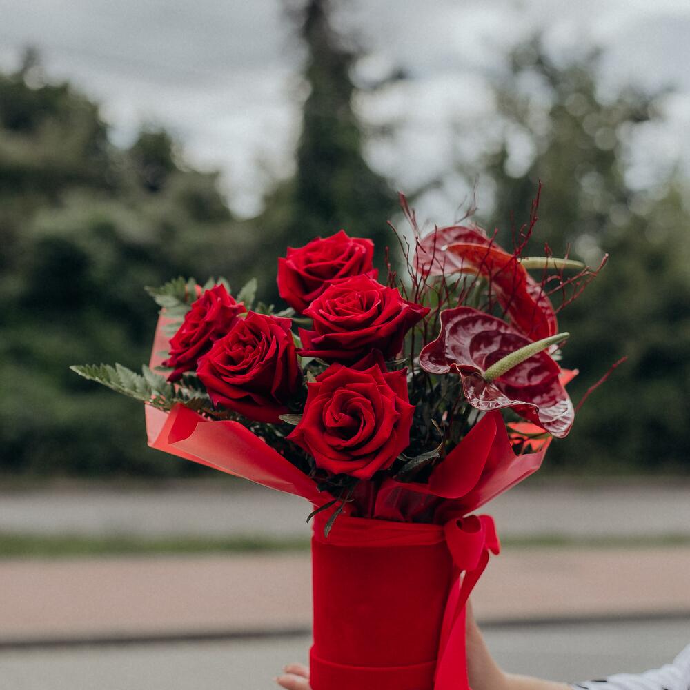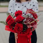 Anthurium with roses is a combination of two beautiful flowers that create an extraordinary composition. Anthurium flowers in intense red symbolize passion and love, while roses add a romantic character to the bouquet. It's the perfect choice for a gift for a loved one or as a decoration for a special occasion. Our florist offers delivery of anthurium with roses flowerbox directly to your home or workplace. Order today and make your gift unforgettable!