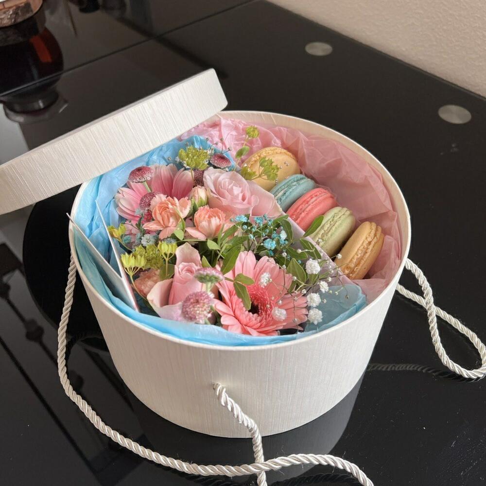 Flowesrbox with macaroons