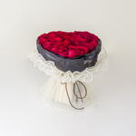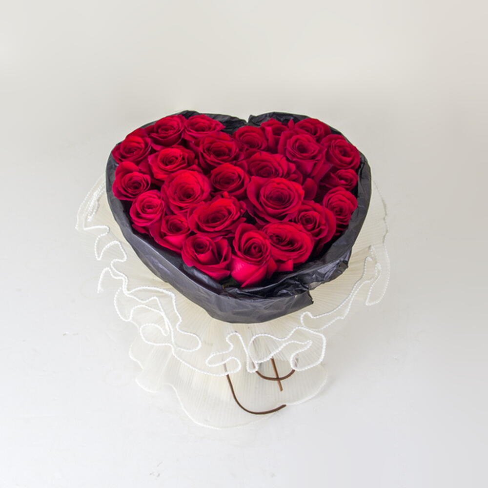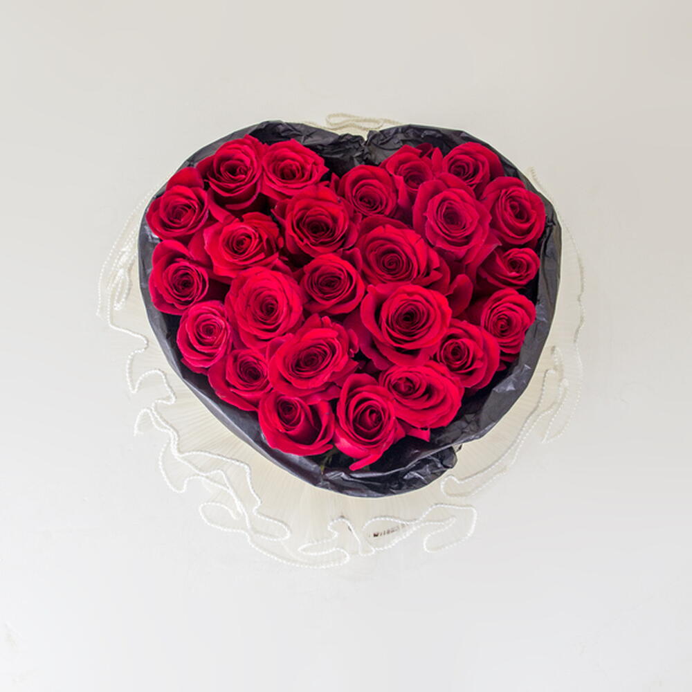 A heart-shaped bouquet overflowing with red roses, a symbol of love and passion. A heartfelt gift that will be cherished for years to come.