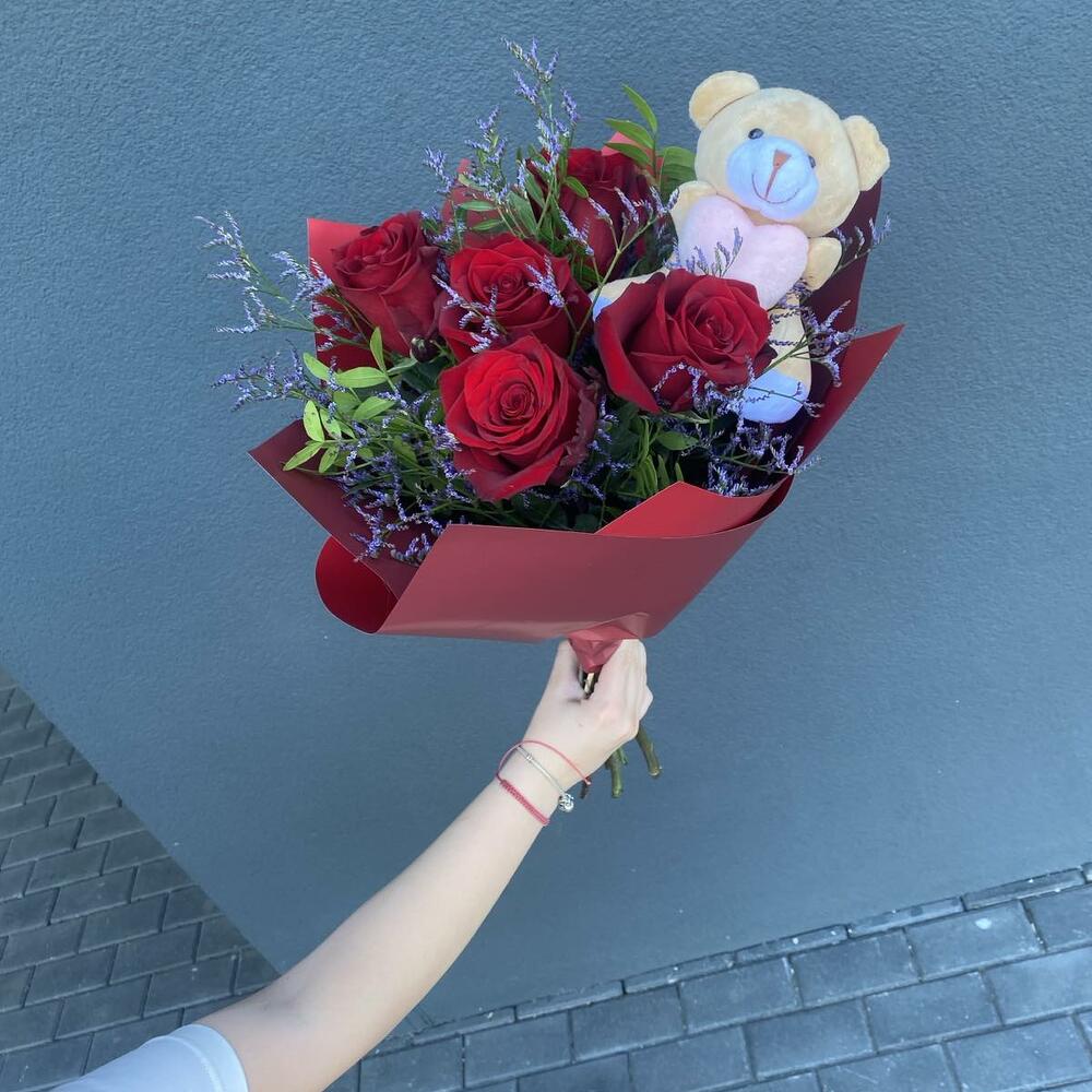 Limonium - 2 pcs paper - 3 pcs rose ekv - 5 pcs honey 18 cm - 1 pcs