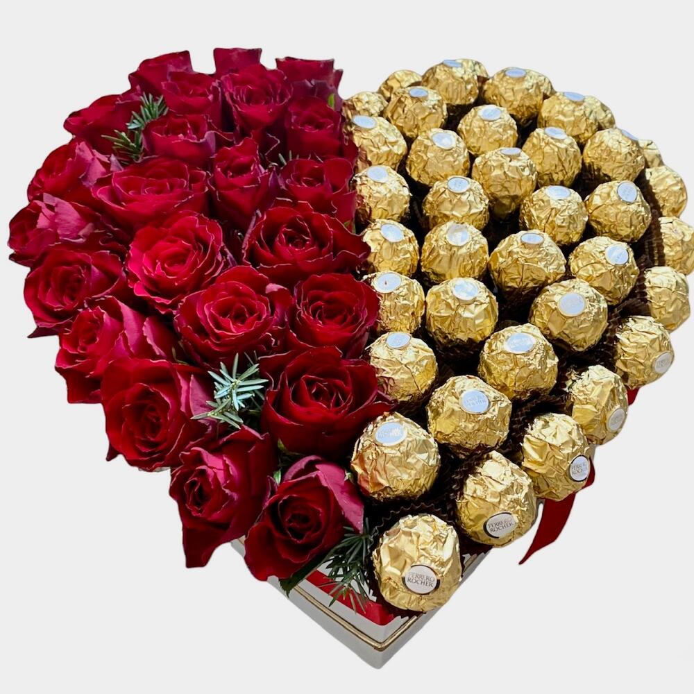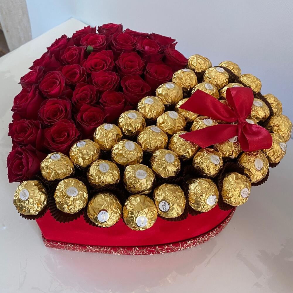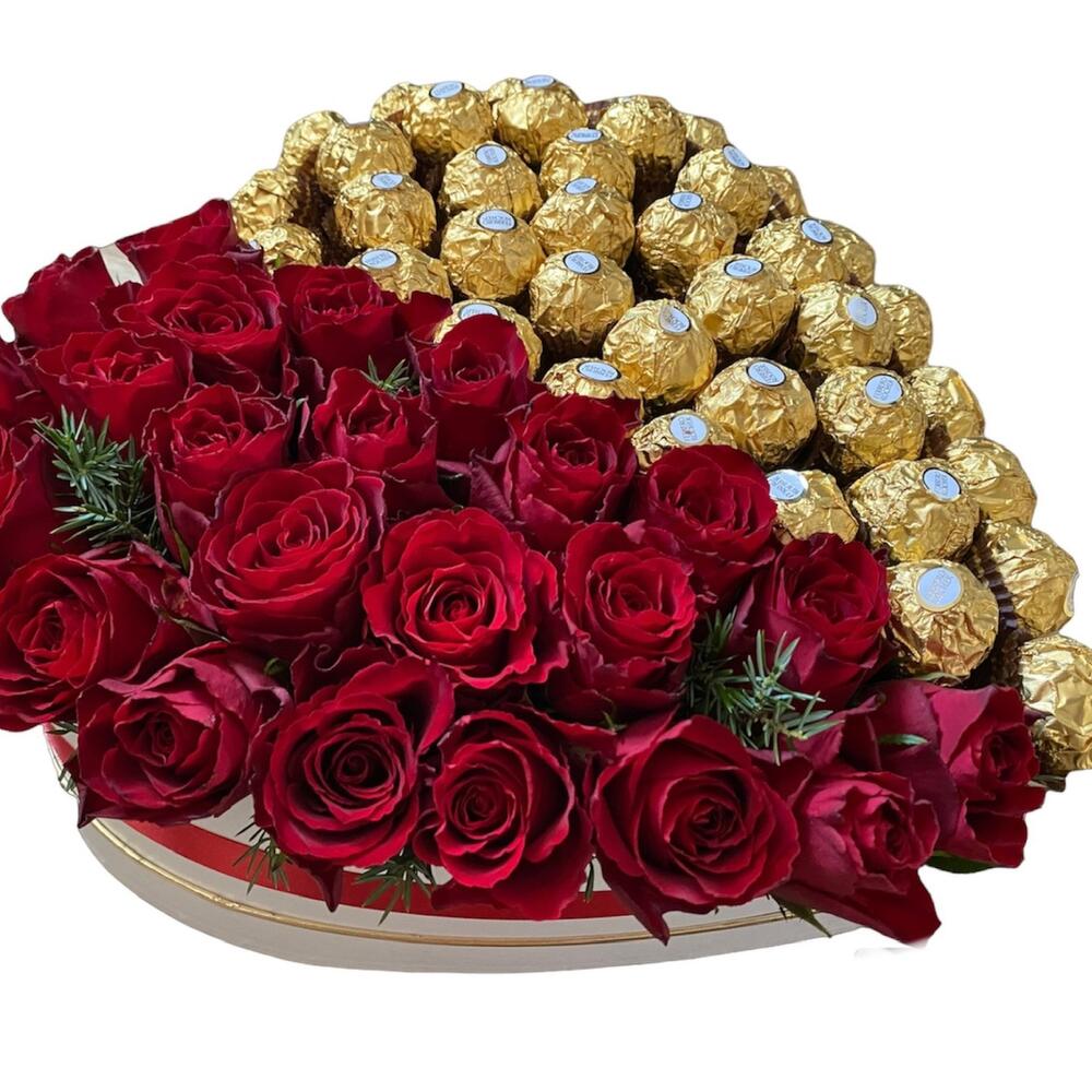 ferrero rocher chocolates - 500 g roses - 23 pcs a box in the shape of a heart - 1 pcs