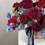 oxypetalum - 8 pcs premium red roses - 24 pcs blue sweet pea - 5 pcs